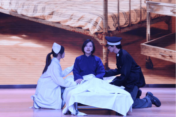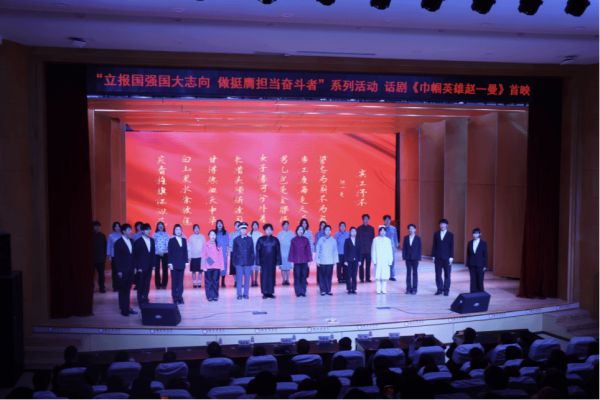 11月12日下午,哈尔滨学院文法学院历时五个月精心打磨的原创话剧《巾帼英雄赵一曼》在哈尔滨学院小音乐厅成功首演。该剧是学校开展“立报国强国大志向 做挺膺担当奋斗者”宣传教育的重要组成部分。校党委副书记李娜、纪委书记杨铁岩、组织部部长丛军、统战部部长刘洪达、纪检办公室主任孙亮、学校相关职能处室负责人及各二级学院党委(党总支)书记莅临现场,与文法学院师生代表共同观看演出,重温红色记忆,感悟英雄精神。