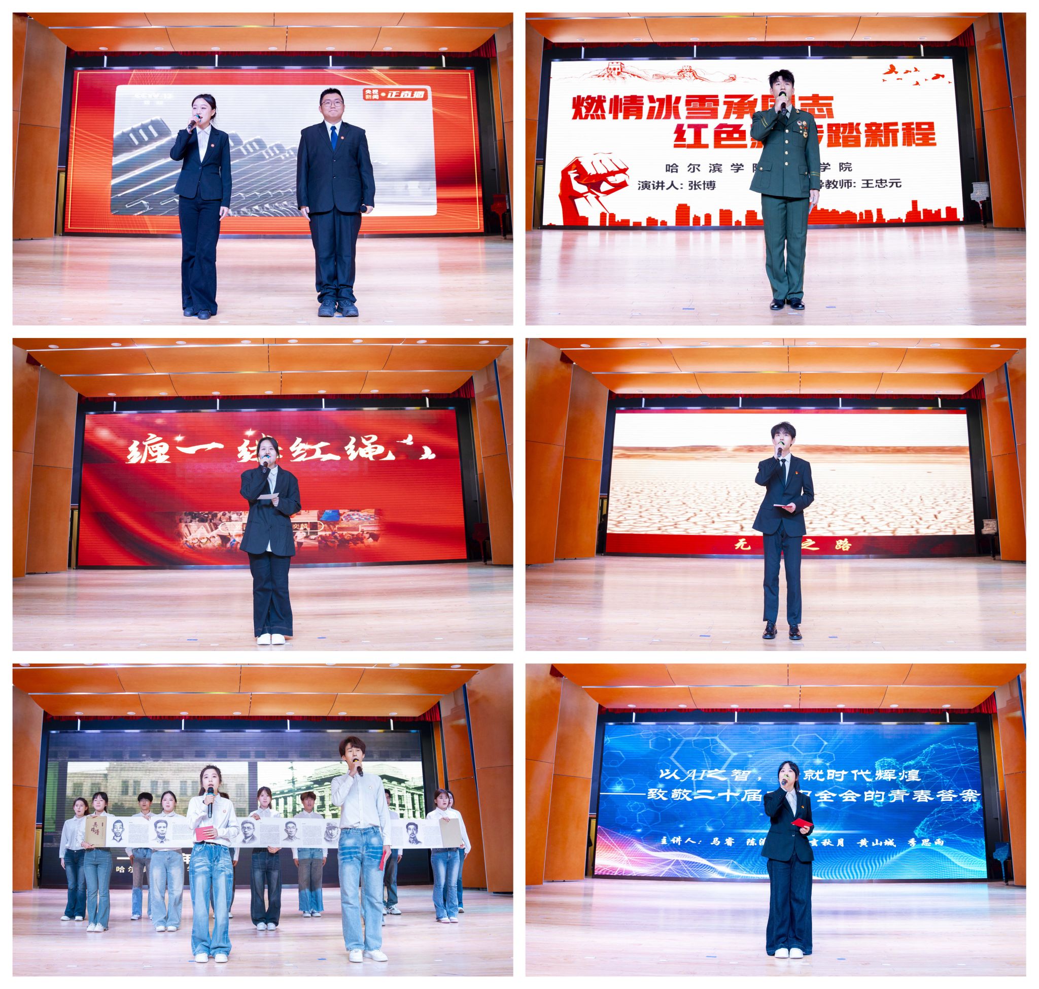 为纪念中国人民抗日战争暨世界反法西斯战争胜利80周年,进一步学习贯彻党的二十大和二十届历次全会精神,开展“立报国强国大志向 做挺膺担当奋斗者”宣传教育,弘扬东北抗联精神构建红色文化育人工作体系,11月21日,学校以“守初心赓续红色血脉 强党性担当强国使命”为主题举办第九届“图说辉煌”主题演讲比赛,为青年学子搭建起感悟历史、抒发担当的交流平台。校长于成学、党委副书记李娜、副校长吴旭峰、副校长陶成云出席。