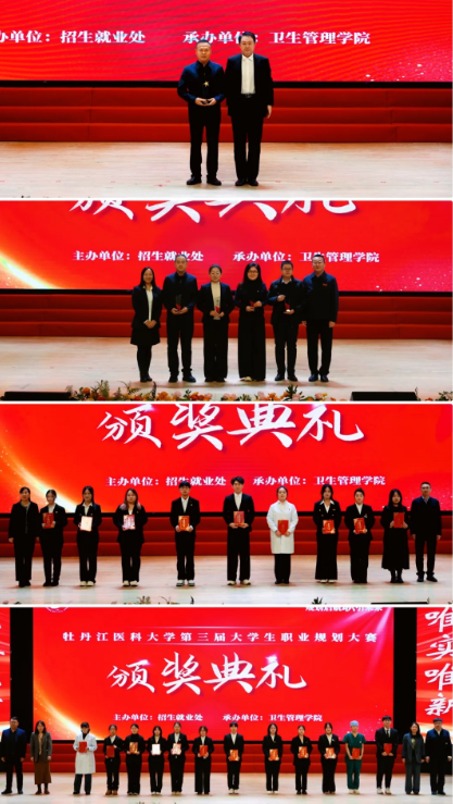 11月21日,牡丹江医科大学第三届大学生职业生涯规划大赛校级决赛及颁奖典礼顺利举行。学校党委副书记弓箭参加典礼并为获奖选手颁奖。本届大赛以“筑梦青春志在四方,规划启航职引未来”为主题,由招生与就业处主办、卫生管理学院承办,自2025年10月启动以来,共吸引全校7079名学生报名参与,经过院级初赛、校级决赛的激烈角逐,最终21名优秀选手脱颖而出,展现了新时代医大学子卓越的职业规划能力与求职风采。