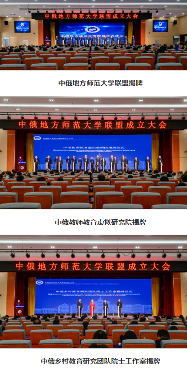 大会上,分别进行中俄地方师范大学联盟揭牌,中俄教师教育虚拟研究院揭牌,中俄乡村教育研究团队院士工作室揭牌。