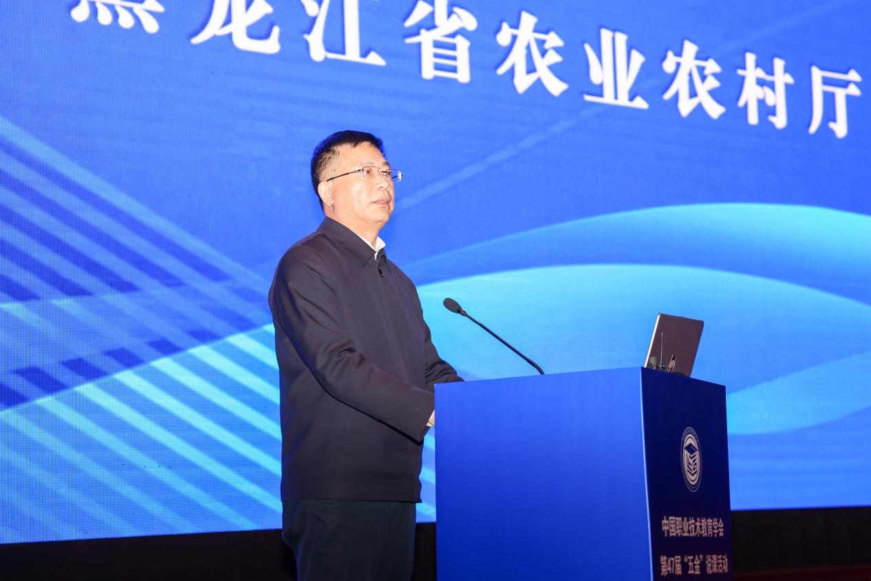 黑龙江农业工程职业学院党委书记焦光纯致欢迎辞,介绍了学校以农为本的办学特色、在农技人才培养与乡村振兴服务中的突出成效,表达了与各方携手推动涉农职教提质升级的诚挚意愿。