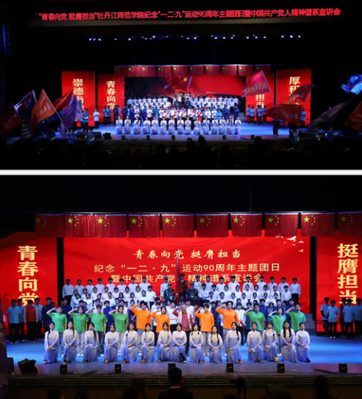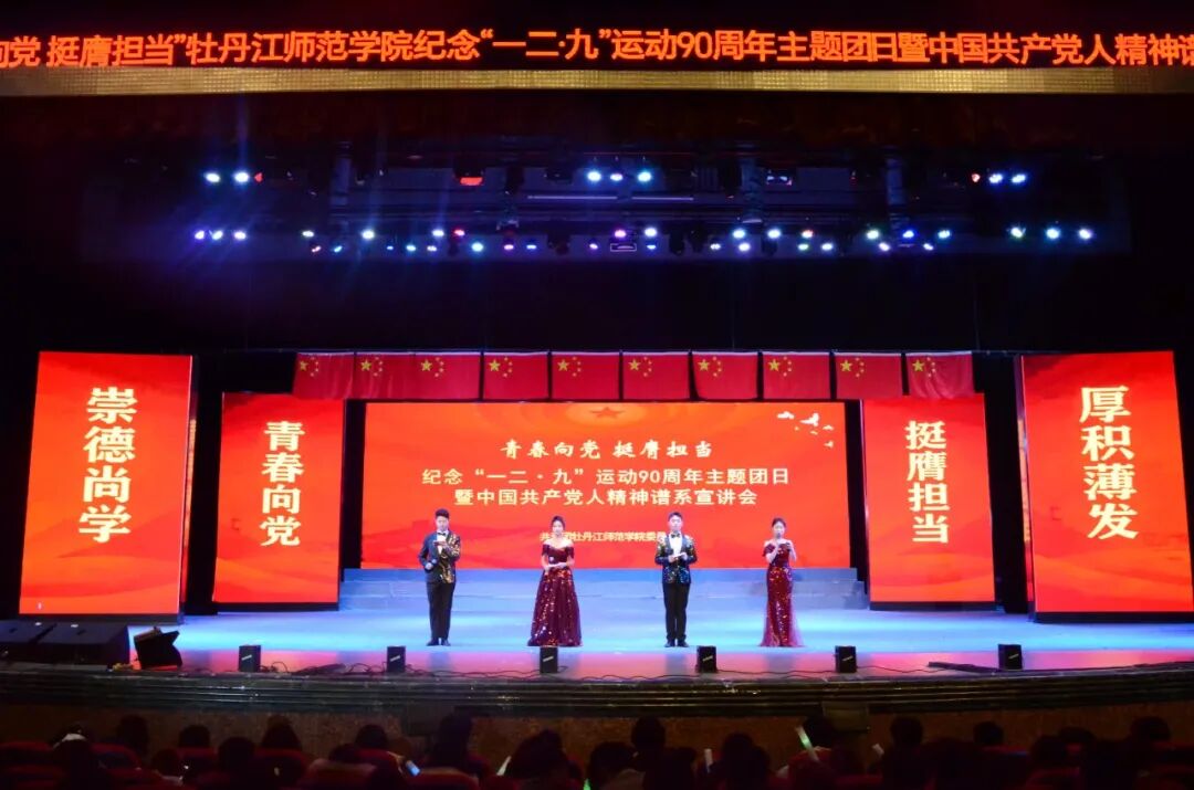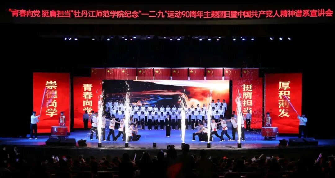 为深入学习贯彻党的二十届四中全会精神,引领团员青年坚定理想信念,表彰团内先优,2025年12月3日18:00,青春向党 挺膺担当——牡丹江师范学院纪念“一二·九”运动90周年主题团日暨中国共产党人精神谱系宣讲会在第一音乐厅举行。学校领导王志浩、丛喜权、刘松、陈海萍、张艳霞、张晓祥、孙伯勇、左明辉、贲利、刘恒文出席大会,各职能部门负责人,二级学院党委书记、副书记、团总支书记、辅导员,全校团员和青年代表共计1100余人参加大会。