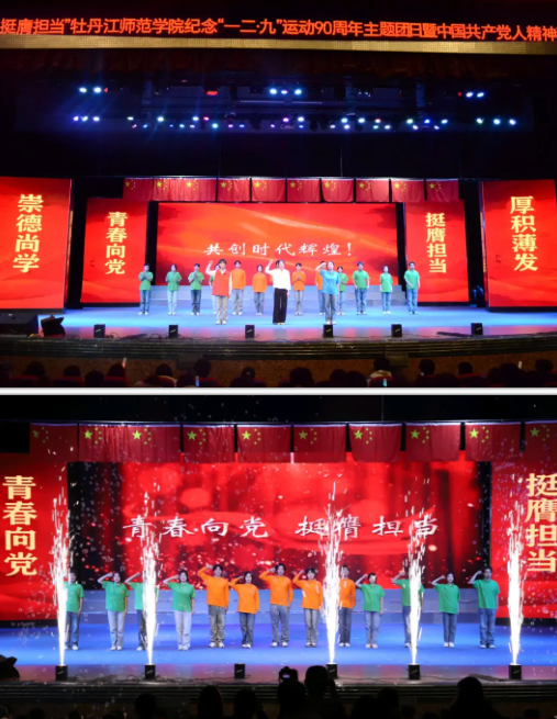 时代强音《青春向党 挺膺担当》以诗朗诵的形式,发出了新时代牡师学子的铮铮誓言。朗诵者声音洪亮,字字铿锵,表达了青年一代对党、对祖国的无限忠诚,抒发了牡师学子们将个人理想融入国家发展伟业,用奋斗书写无悔青春的坚定抉择。