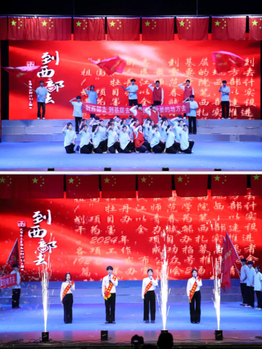 情景歌舞《到西部去》则深情讲述了牡丹江师范学院学子响应国家号召,投身西部建设的动人故事。节目通过生动的场景再现和深情的歌声,描绘了志愿者们告别校园、扎根基层的决绝与奉献,将“到祖国最需要的地方去”的青春誓言化为动人的艺术语言,感人至深。