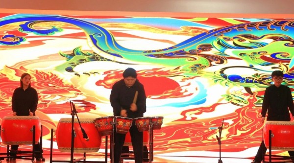 由尹天野老师指导带来的中国鼓《龙腾虎跃》,鼓点铿锵,宛如千军万马奔腾。