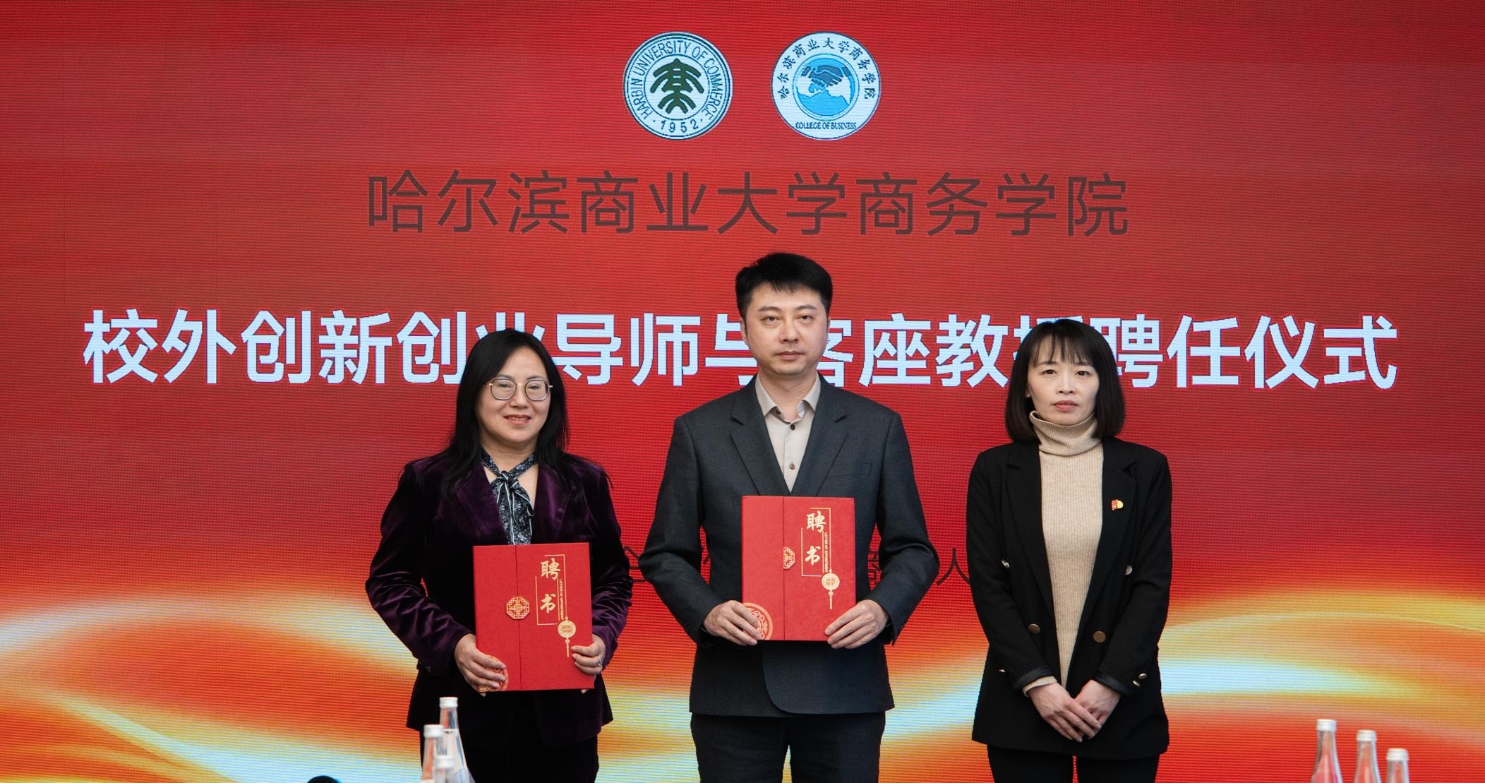 为进一步深化校企合作,共育商科人才,搭建高校与企业资源共享、优势互补的合作平台,近日,哈尔滨商业大学商务学院与黑龙江易商教育科技有限公司举行校企战略合作暨共建实习实训基地揭牌签约仪式。哈尔滨商业大学党委常委、副校长修国英,上海胜营科技(集团)有限公司董事长王仁刚,黑龙江易商教育科技有限公司总经理刘广耀出席仪式。哈尔滨商业大学商务学院党委书记赵莉,党委副书记、院长易加斌,各教研室主任、教师代表;黑龙江易商教育科技有限公司相关部门负责人参加仪式。