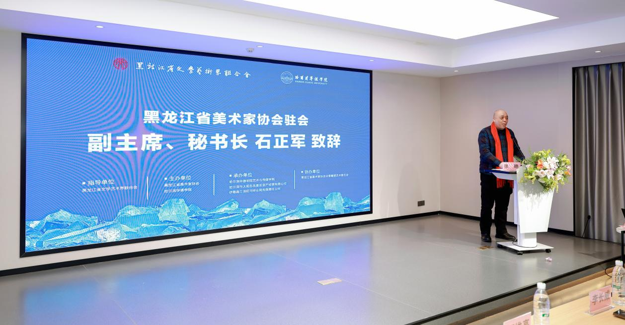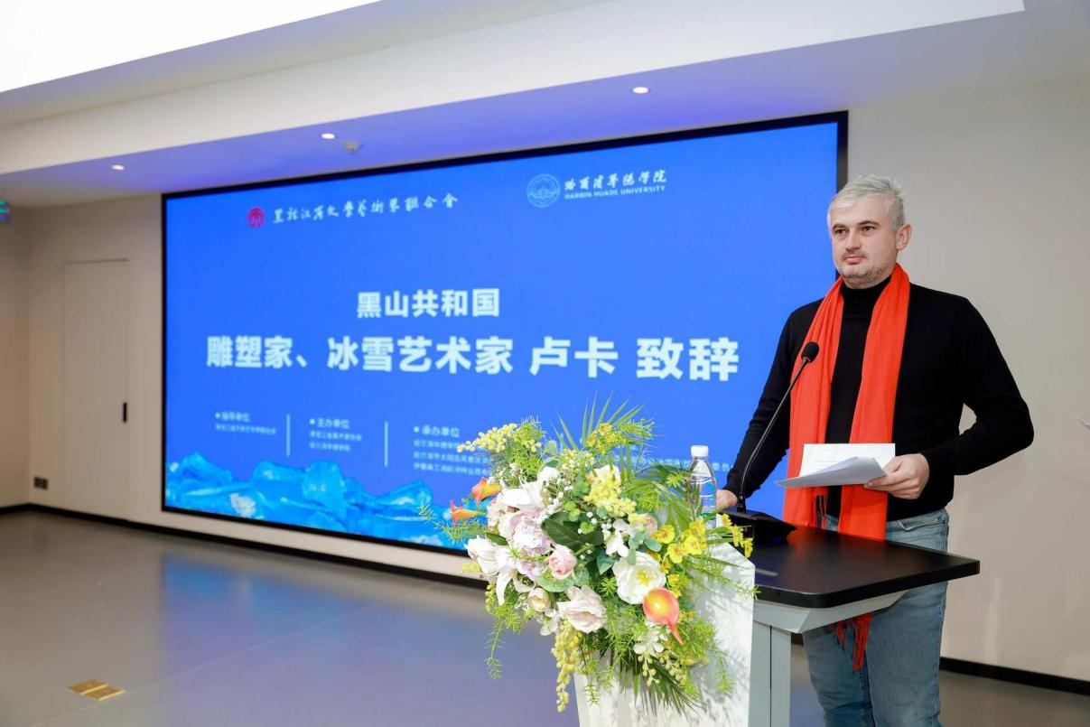 开幕式上,黑龙江省美术家协会驻会副主席、秘书长石正军,伊春森工汤旺河林业局有限责任公司董事长陈业新,哈尔滨华德学院校长李长威,黑山共和国雕塑家、冰雪艺术家卢卡,参展艺术家代表分别发表致辞。