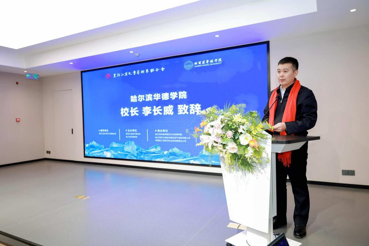 李长威校长在致辞中回顾了哈尔滨华德学院19年来深耕冰雪艺术教育的历程。“自2005年创立‘华德雪艺’以来,学校累计获得国际国内奖项400余项,成为中国首个实现雪雕赛事大满贯的团队。”他特别指出,本届艺术展首次设立汤旺河林海奇石景区分展区,是学校践行产教融合、服务地方发展的创新举措。