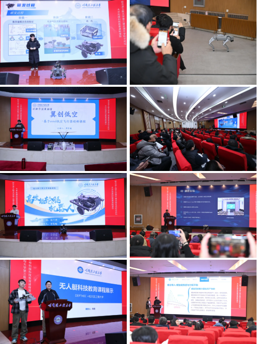 下午,各中学领导和老师们观看大中衔接科技教育课程演示,现场观摩四足机器人、无人船、低空飞行器、轮腿式机器人。现场气氛热烈,与会人员围绕如何进行大中课程衔接,培养适应未来、引领未来发展的拔尖创新人才进行互动交流。