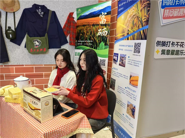哈理工研究生在中央大街的省供销社“食趣空间”进行直播