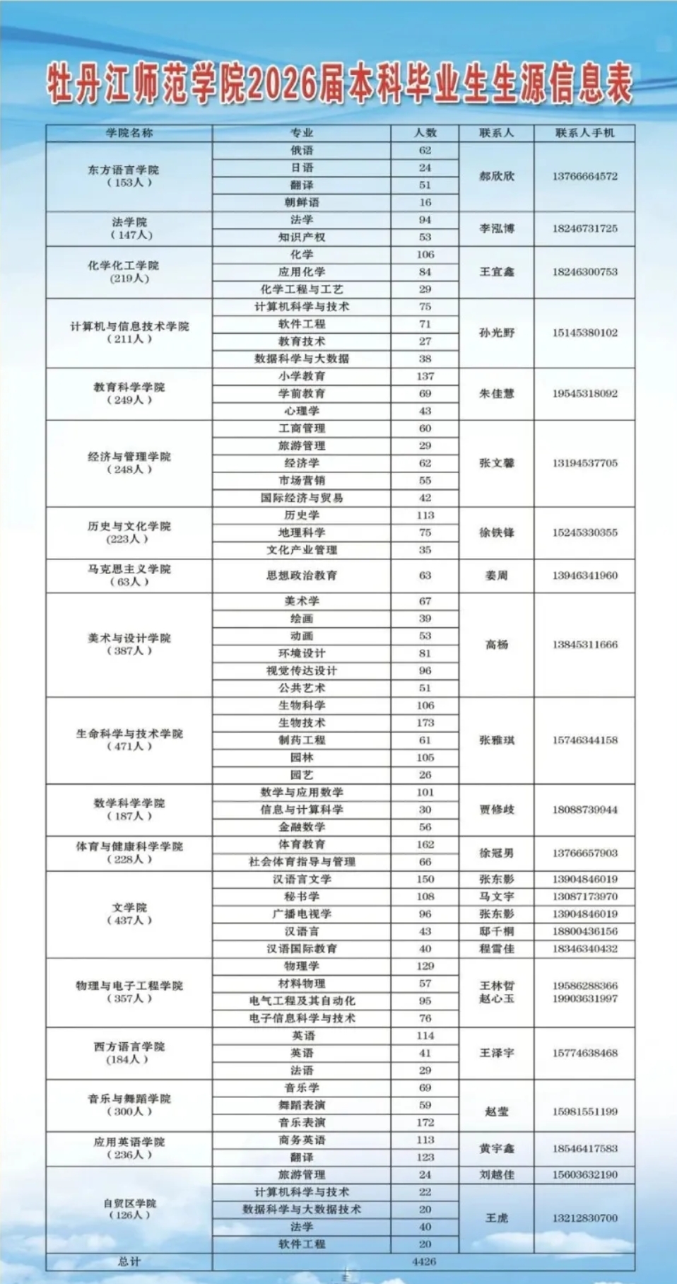 用人单位在生源专业及现场参会方面有问题,请联系牡丹江师范学院招生就业处刘老师,联系电话:0453-6512509。