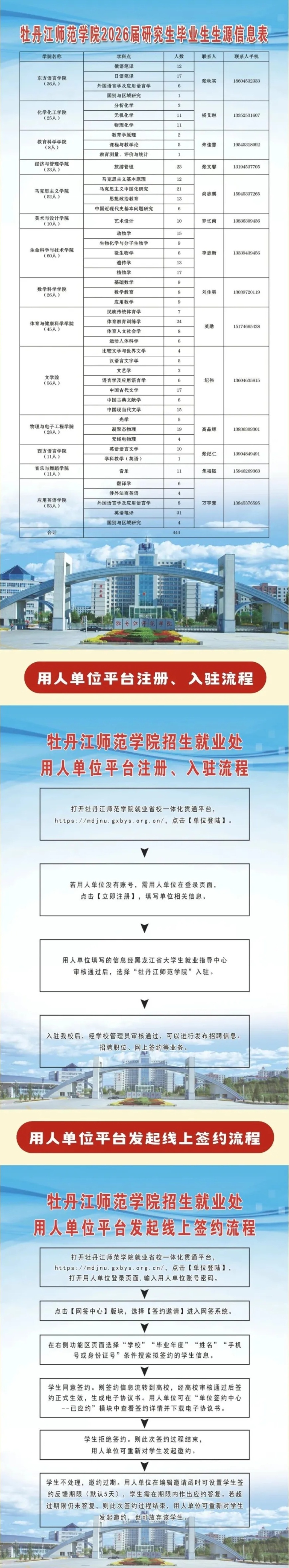 8.学校实行全面网签,用人单位与毕业生需在“牡丹江师范学院就业省校一体化贯通平台" https://mdjnu.gxbys.org.cn/签订协议,招聘单位可按附件提示流程提前在签约网站注册。