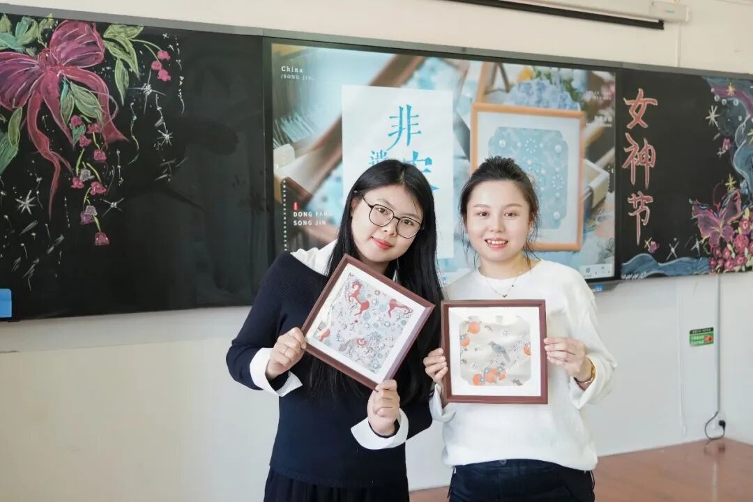 为传承中华优秀传统文化,提升教职工的艺术修养,学校当天下午分批次举办了“指尖传承,美育润心”宋锦珍珠画艺术沙龙体验活动。在专业老师的细致指导下,大家沉浸式感受非物质文化遗产宋锦的独特韵味,从了解历史渊源到动手创作实践,在一针一线、一珠一嵌中,放松身心、陶冶情操,既感受传统工艺的匠心之美,又在动手创作中收获乐趣与成就感,现场艺术氛围浓厚。