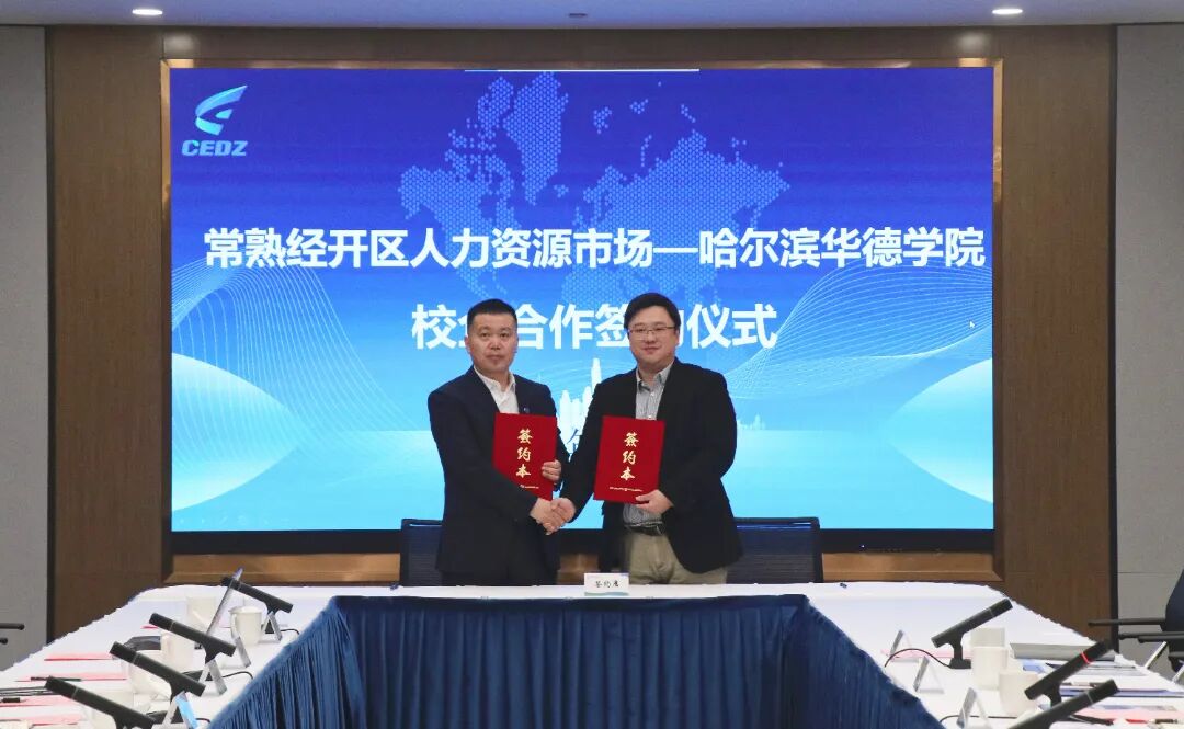 常熟经开区组织人事局副局长郭浩对李长威校长一行表示热烈欢迎,对学校高效推进合作、务实开展就业工作的作风给予高度评价,详细介绍了经开区产业发展规划、重点产业布局、企业用工需求及人才引育扶持政策。他指出,哈尔滨华德学院毕业生专业功底扎实、实践能力突出、职业素养优良,与经开区企业人才需求高度匹配,期待以此次签约为新起点,深化实习就业基地建设、定制化人才培养、产学研协同创新等多方面合作,助力经开区产业高质量发展。