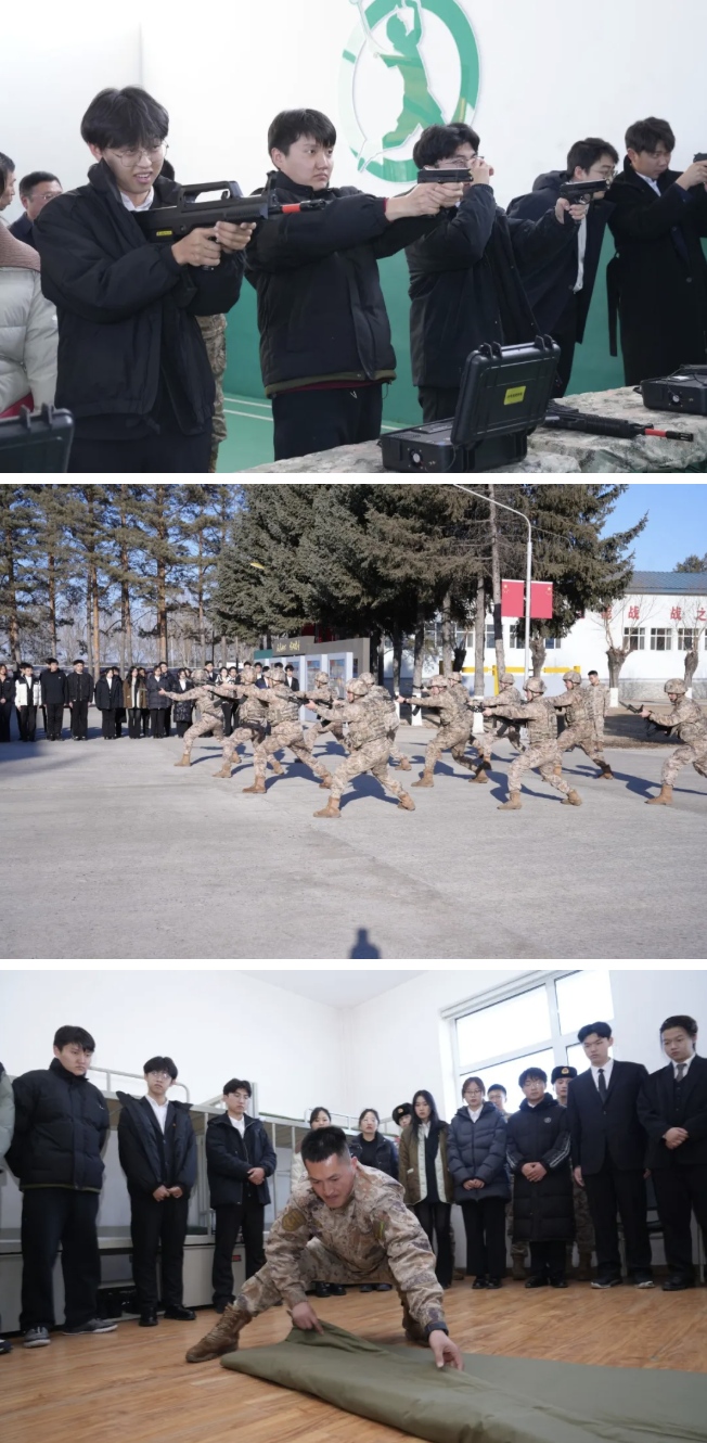 签约仪式后,师生们一同走进军营参加国防教育主题活动。在模拟射击体验区,青年学生们在军官的专业指导下端枪、瞄准、击发,沉浸式体验军事训练项目;观看刺杀操表演、参观警卫勤务连兵舍,聆听了一堂生动的国防教育课。同学们纷纷表示,要将投身军营作为义不容辞的时代担当、百炼成钢的最佳平台、实现荣光的不悔选择,在祖国北疆沃野上绽放青春之花。