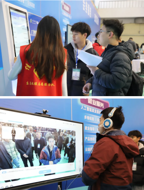 双选会现场特别设立“AI赋能职业能力提升专区”,全新投入使用的AI简历打印一体机、AI模拟面试机、职业探索一体机将就业指导从课堂延伸至可操作、可互动的智能终端。毕业生们纷纷排队体验,通过智能设备优化简历、模拟实战、探索职业方向。