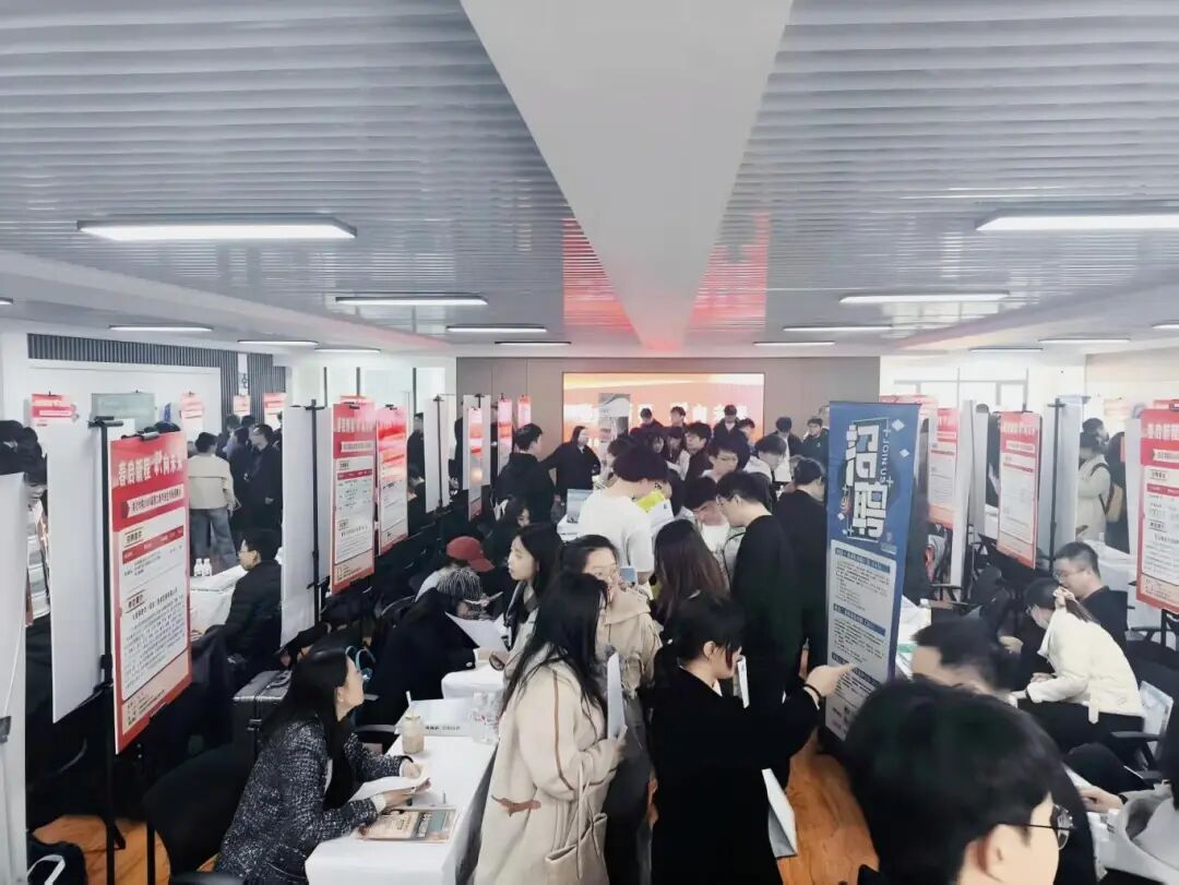 招聘会现场人头攒动,气氛热烈。近1500名毕业生到场参与,累计投递简历2200余份。现场还专门设立了简历诊断、求职指导、签约服务、AI求职助手等专区,为毕业生求职之路提供贴心支持。