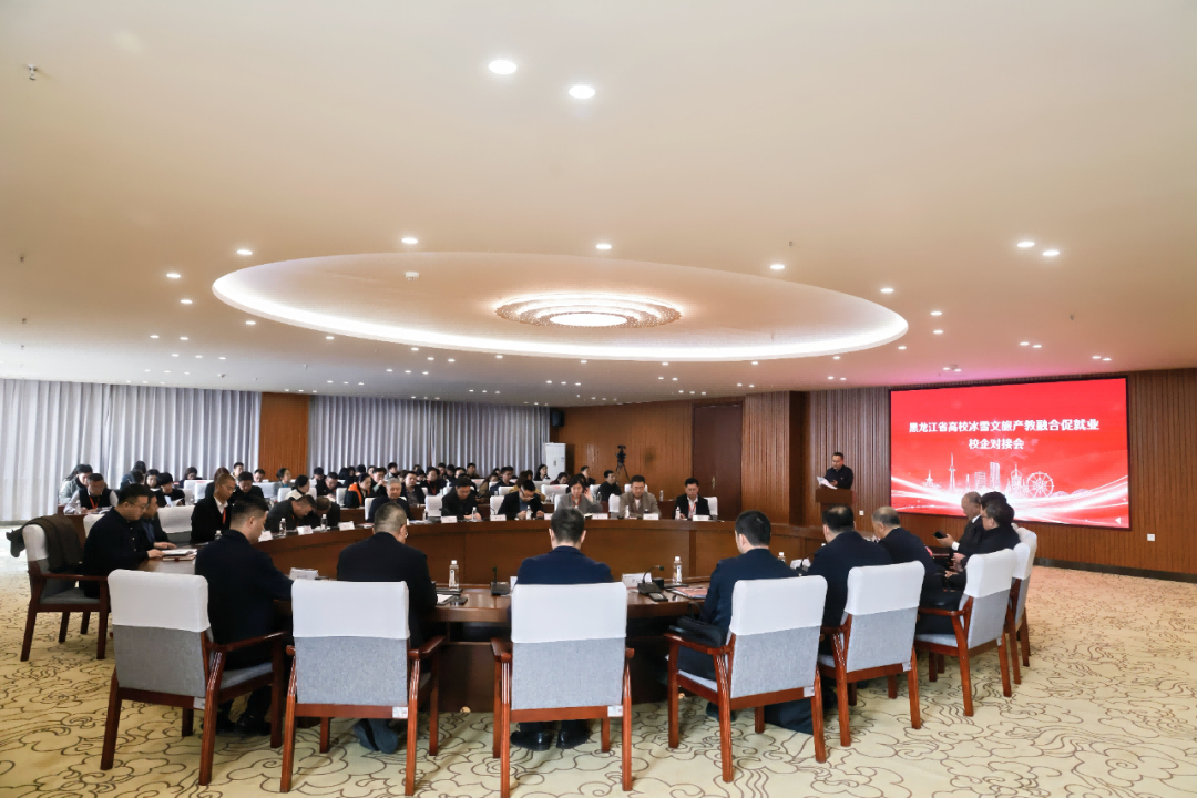 黑龙江省教育厅高校学生处处长齐国涛、学生处一级调研员崔志伟,黑龙江省大学生就业创业指导中心主任刘鸿宇、就业创业服务部部长孙庆彬,黑龙江工程学院昆仑旅游学院理事长王为正、党委书记迟海昇、校长李英杰、执行校长栾天等领导出席活动。全省22所高校、50余家冰雪文旅企业代表齐聚一堂,共商产教融合发展大计。活动由学校党委副书记、副校长武录齐主持。