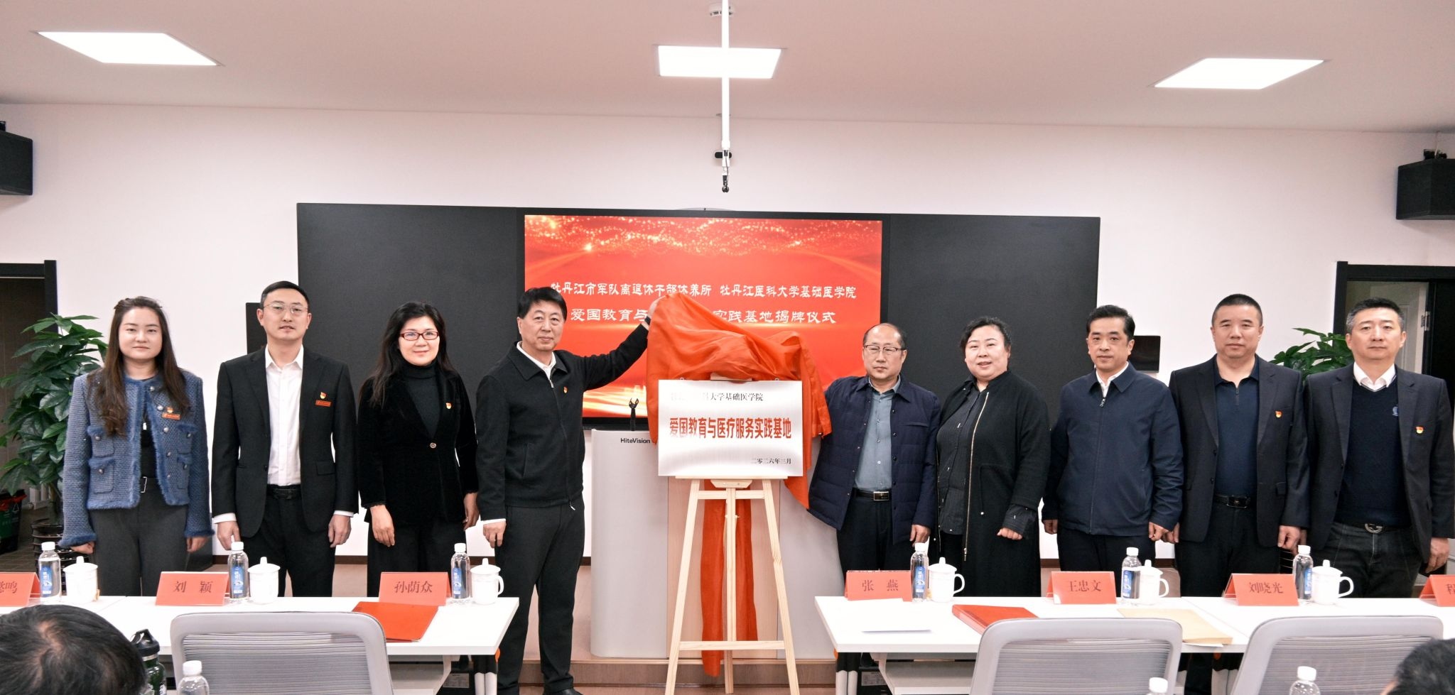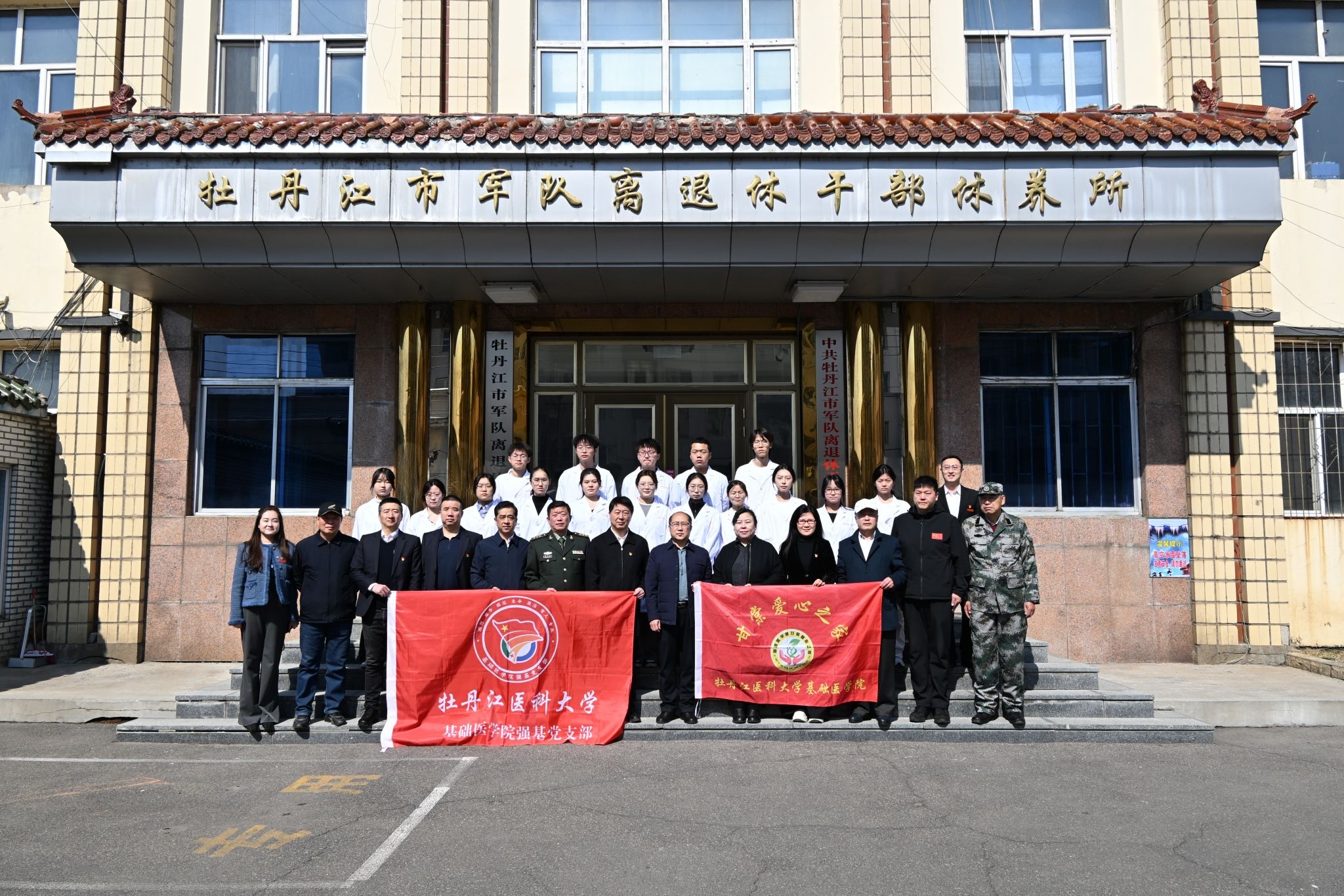 为深入挖掘红色资源育人价值,推动医学专业实践与思政教育深度融合,搭建军地协同发展新桥梁,3月31日上午,牡丹江医科大学基础医学院与牡丹江退役军人事务局军休所共建的“爱国教育与医疗服务实践基地”正式挂牌。牡丹江市退役军人事务局、市关工委相关领导,学校基础医学院领导、部分学生干部,入党积极分子代表及军休干部代表共同参与本次活动。