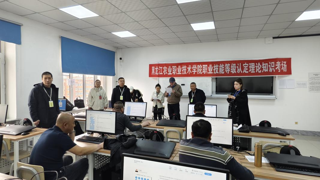 考核全程严格遵循职业技能标准,筑牢质量防线。佳木斯市技能人才评价质量督导员王舜光、史钟文等对考核全过程进行监督,确保流程规范、公平公正。学院院长、党委副书记韩雪松,党委副书记、工会主席孟凡奇,副院长聂龙、王树军等领导深入现场巡查指导,细致了解考核组织与实施情况,要求全体考务人员严守职责,为考生营造有序的考核环境。