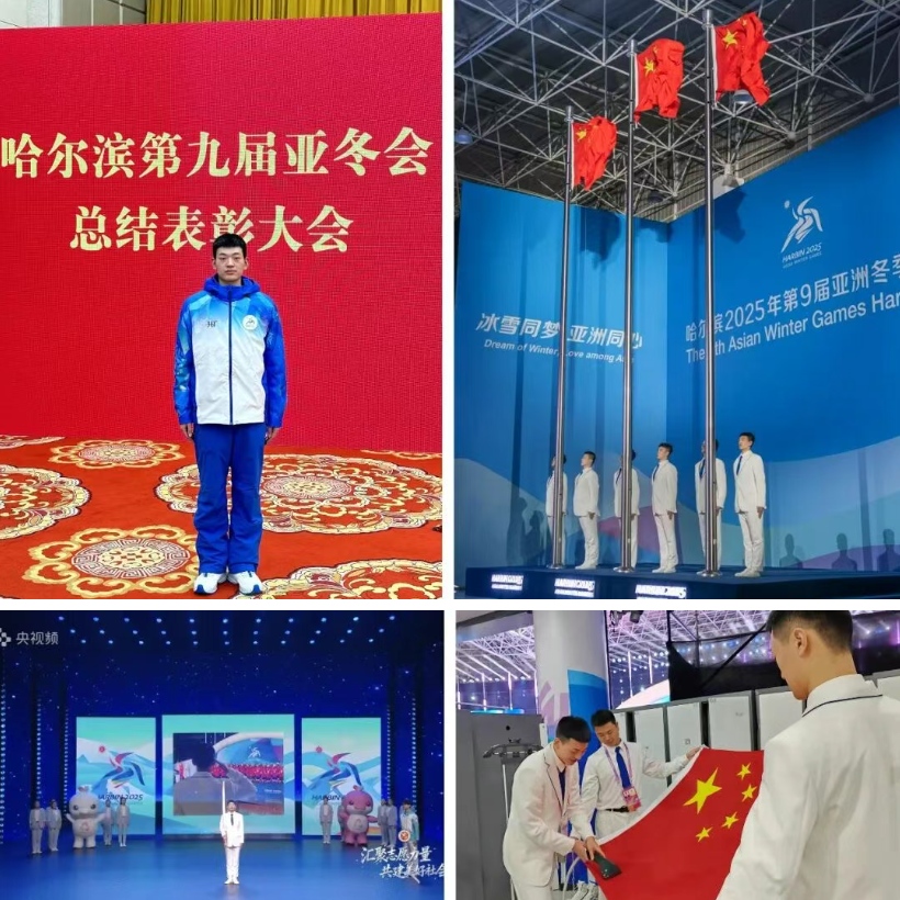 2025年第九届亚冬会在哈尔滨举办,王明主动申请担任升旗手。为圆满完成任务,他提前进行了500余小时专项训练,从动作规范到节奏把控,每一个细节都精益求精。赛事期间,他圆满完成32场颁奖升旗任务,累计服务超300小时,以严谨的态度与挺拔的身姿展现中国青年风采。