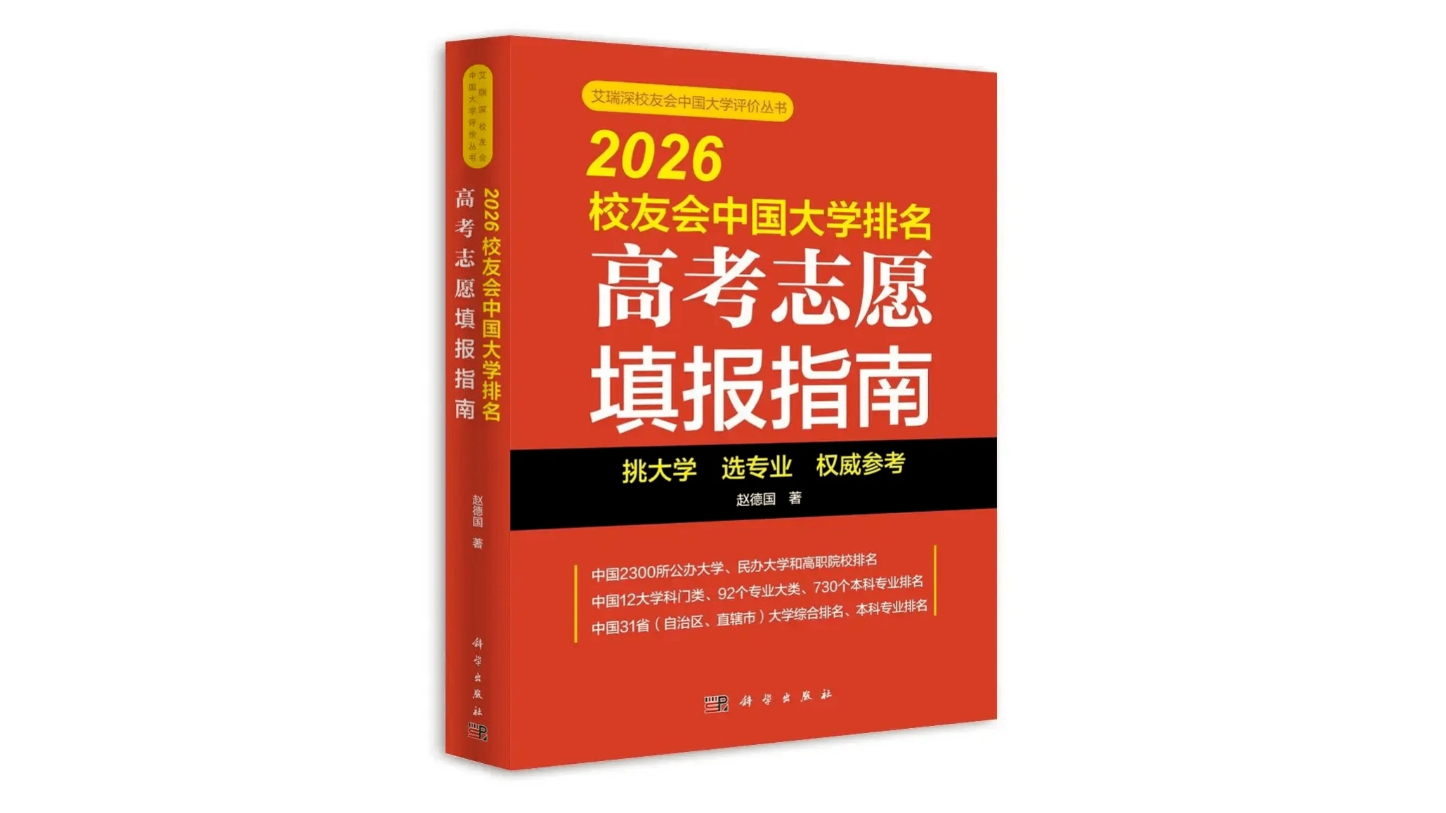 △《2026校友会中国大学排名:高考志愿填报指南》由科学出版社出版,历年来深受全国高考考生和家长欢迎,具有广泛影响力
