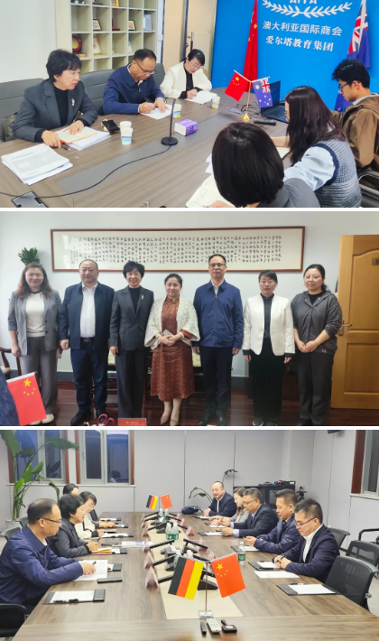 在北京期间,大庆市二级巡视员刘秀丽一行赴京开展招商引资工作,并重点调研职教出海相关情况,与黑龙江商业职业学院一行顺利汇合,共同先后拜访了澳大利亚国际商会、中国基本建设优化研究会、莱茵科斯特德国双元教育集团,开展多场务实合作交流。在澳大利亚国际商会,双方围绕国际人才培养、跨境产学研合作、海外实习就业拓展等议题深入沟通,明确学院职教出海发展思路,为助力黑龙江省及大庆市对外开放与跨境产业发展奠定基础;在中国基本建设优化研究会,双方聚焦基础设施建设、产业优化升级、人才需求导向达成共识,初步确定邀请专家参与专业优化、课程开发与实践教学,为地方现代化产业体系建设提供智力支撑;在莱茵科斯特德国双元教育集团,走访团系统学习德国“双元制”职业教育先进理念与实践经验,探索培育适配战略性新兴产业需求的高素质技术技能人才的新路径。