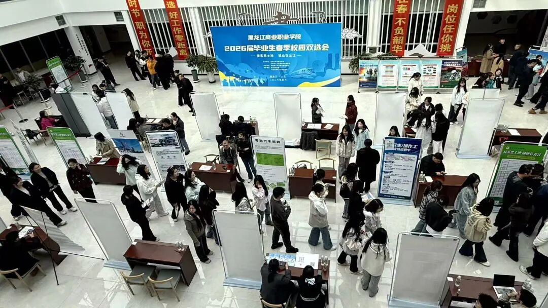 为深入贯彻落实教育部和黑龙江省教育厅关于高校毕业生就业工作部署,精准搭建毕业生与用人单位双向选择平台,全力推动毕业生高质量充分就业,4月15日,黑龙江商业职业学院以“情系黑土地 就业在龙江”为主题,在图书馆举办了2026届毕业生春季校园双选会。学院党委副书记、纪委书记王慧华,党委委员、副院长、工会主席姚俊峰到场指导工作。