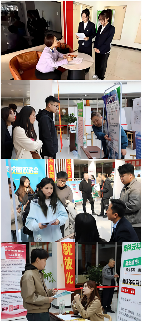 本次双选会紧扣新时代高职就业工作特点,深化政校企三方联动,全面推行“线上+线下”融合招聘模式,以精细化、专业化服务护航毕业生平稳步入职场。双选会吸引了省内外70余家优质企业参会,岗位覆盖金融、制造、汽车、新能源、信息技术、文旅、新媒体等多个重点领域,为毕业生提供了多元优质的就业选择。活动现场秩序井然、氛围热烈,毕业生主动沟通、踊跃投递简历,校企双方高效对接、精准匹配,构建起有广度、有深度、有温度的双向选择、双向需求就业服务体系。