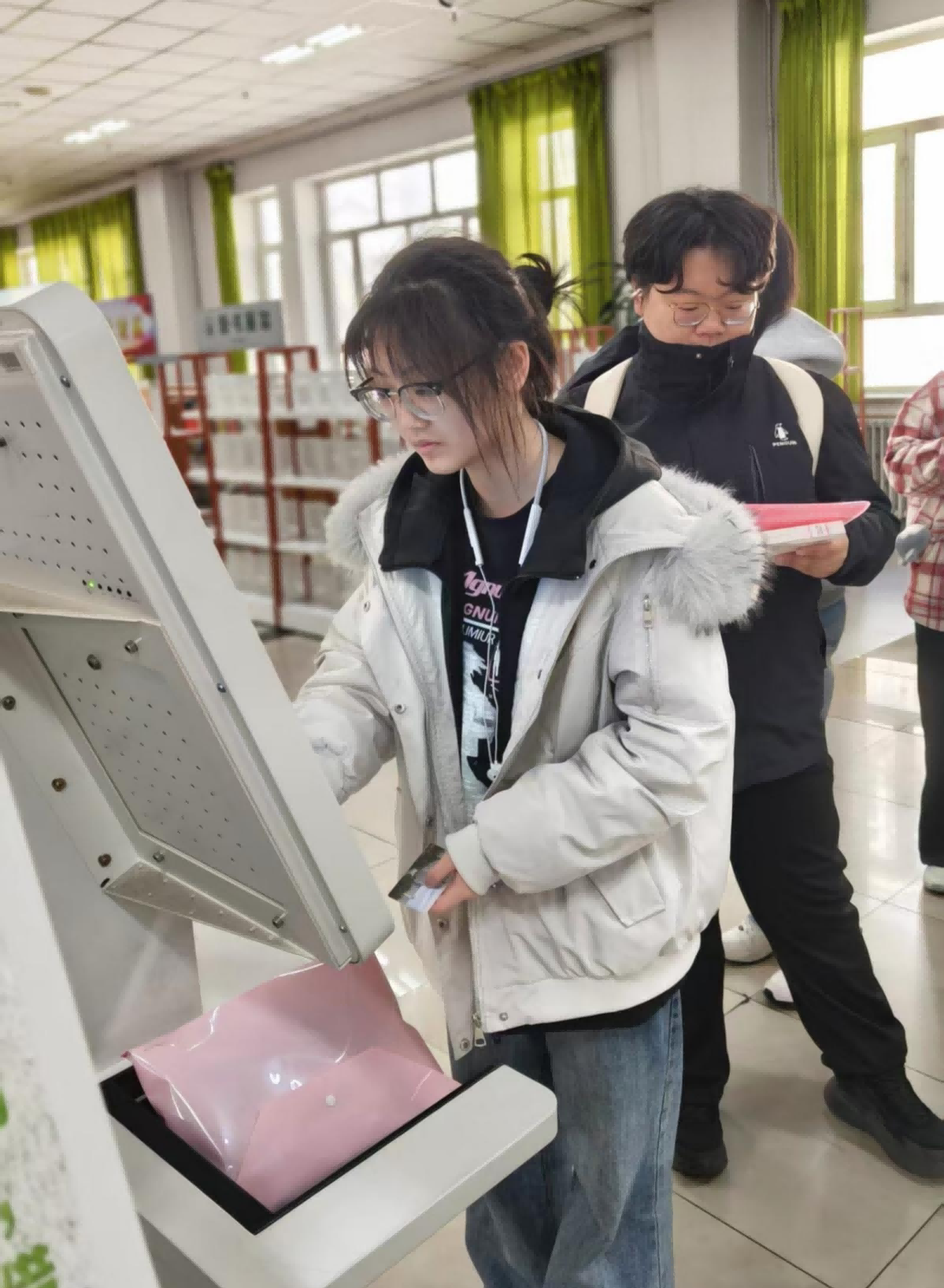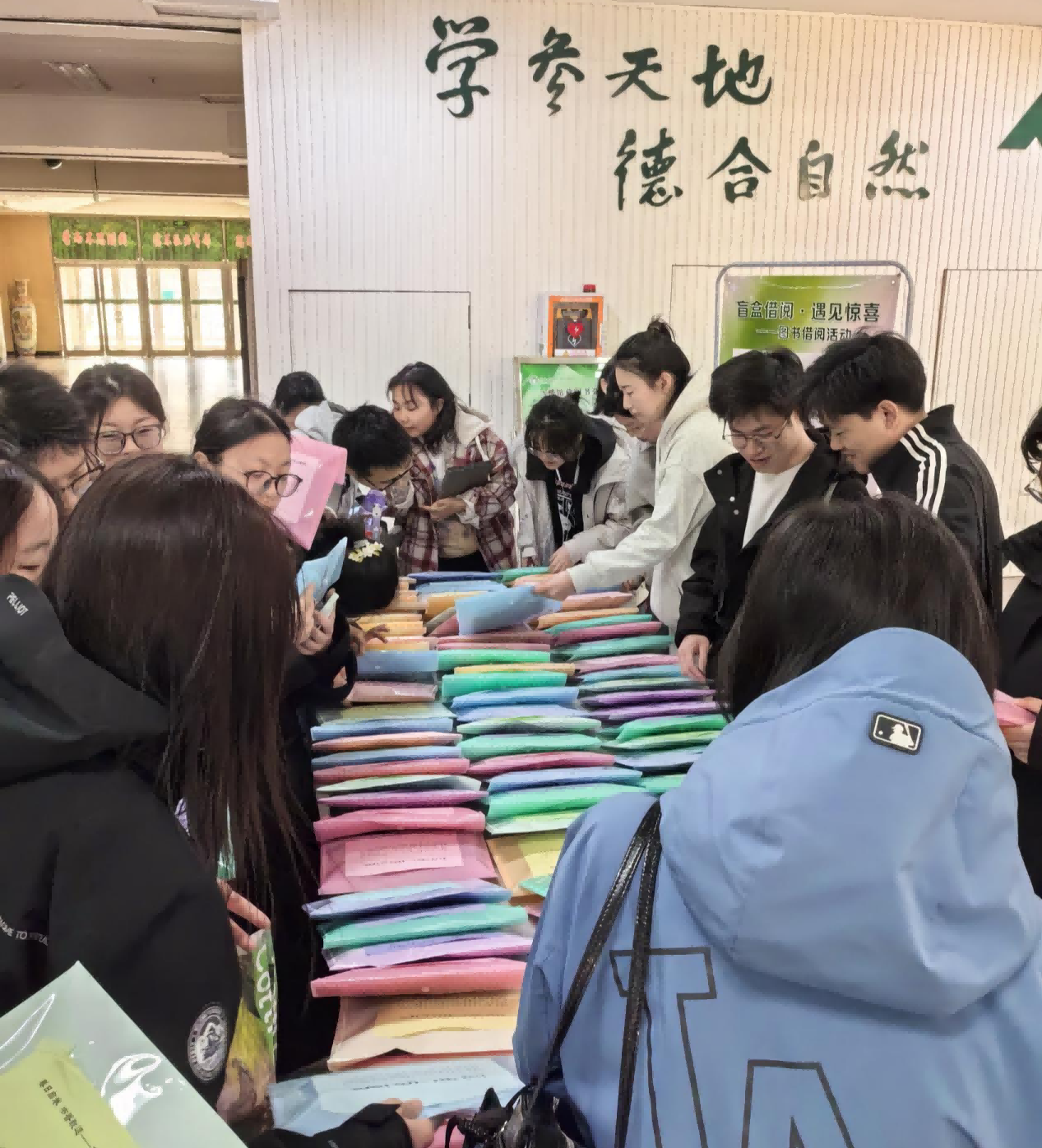 活动现场,读者们怀揣期待,凭校园卡有序领取图书盲盒,眼神里满是对未知图书的好奇与向往,期待一场与书籍的浪漫“盲遇”。东北林业大学图书馆的工作人员提前精心“备货”,盲盒里藏着满满的惊喜——文学小说、人文社科、经典名著等多种品类的馆藏好书,搭配专属定制手账本,让拆盲盒的快乐与阅读的仪式感双重叠加,彻底治愈“选书困难症”。大家抽完盲盒后快速完成借阅,欢声笑语间,书香在人群中悄悄流淌。