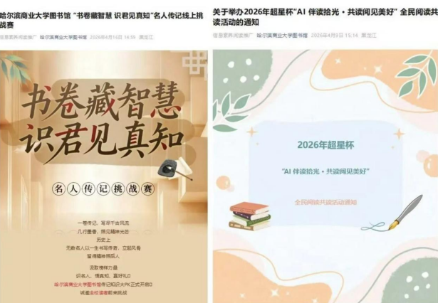 开展“非遗瑰宝 书香传承”中国非遗主题线上知识竞答,于书香中感悟非遗瑰宝的魅力,赋能文脉赓续与校园人文涵养;推出“AI伴读拾光·共读阅见美好”全民阅读共读活动,将传统阅读与智能科技融合,在朝夕共读中体悟文字力量,传递人文温度;举办“传承精神谱系 擘画时代新篇”主题活动,引导师生从中国共产党人精神谱系中汲取奋进力量,助力时代新人铸魂工程;上线“书卷藏智慧 识君见真知”名人传记线上挑战赛,让榜样力量照亮成长之路;依托21天讲座打卡计划,拓宽知识视野,激发探索求知的内生动力;组织“诵经典文脉·传中华薪火”经典朗读活动,以千古名篇承载家国底蕴、浸润精神世界,厚植文化自信根基。