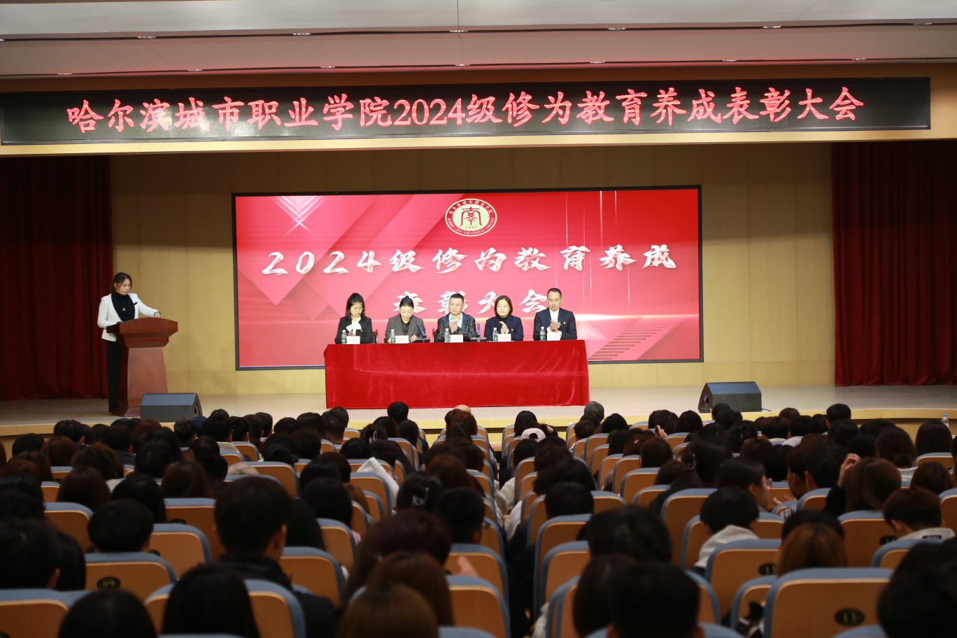 少年自有凌云志,不负青春韶华时。10月15日,哈尔滨城市职业学院2024级新生修为教育养成表彰大会在主楼603多媒体功能厅举行。党委副书记段有志,组织部部长、督导办主任徐丽丽,宣传部部长、马克思主义学院院长、督导办主任魏莉莉,学生处处长、团委书记、全媒体学院主任刘子威,学生处副处长、团委副书记贺可爽,各院系主任、训练员及2024级新生代表参加表彰大会。