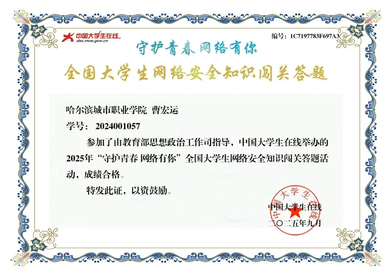 此次国家网络安全宣传周活动的开展,在哈尔滨城市职业学院营造了浓厚的网络安全宣传氛围,让广大师生深刻认识到网络安全的重要性,有效提升了师生的网络安全意识和防护技能。未来,学校将持续推进网络安全宣传教育工作常态化,不断探索创新宣传教育形式,为师生创造更加安全、健康、文明的网络环境。
