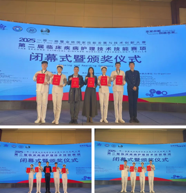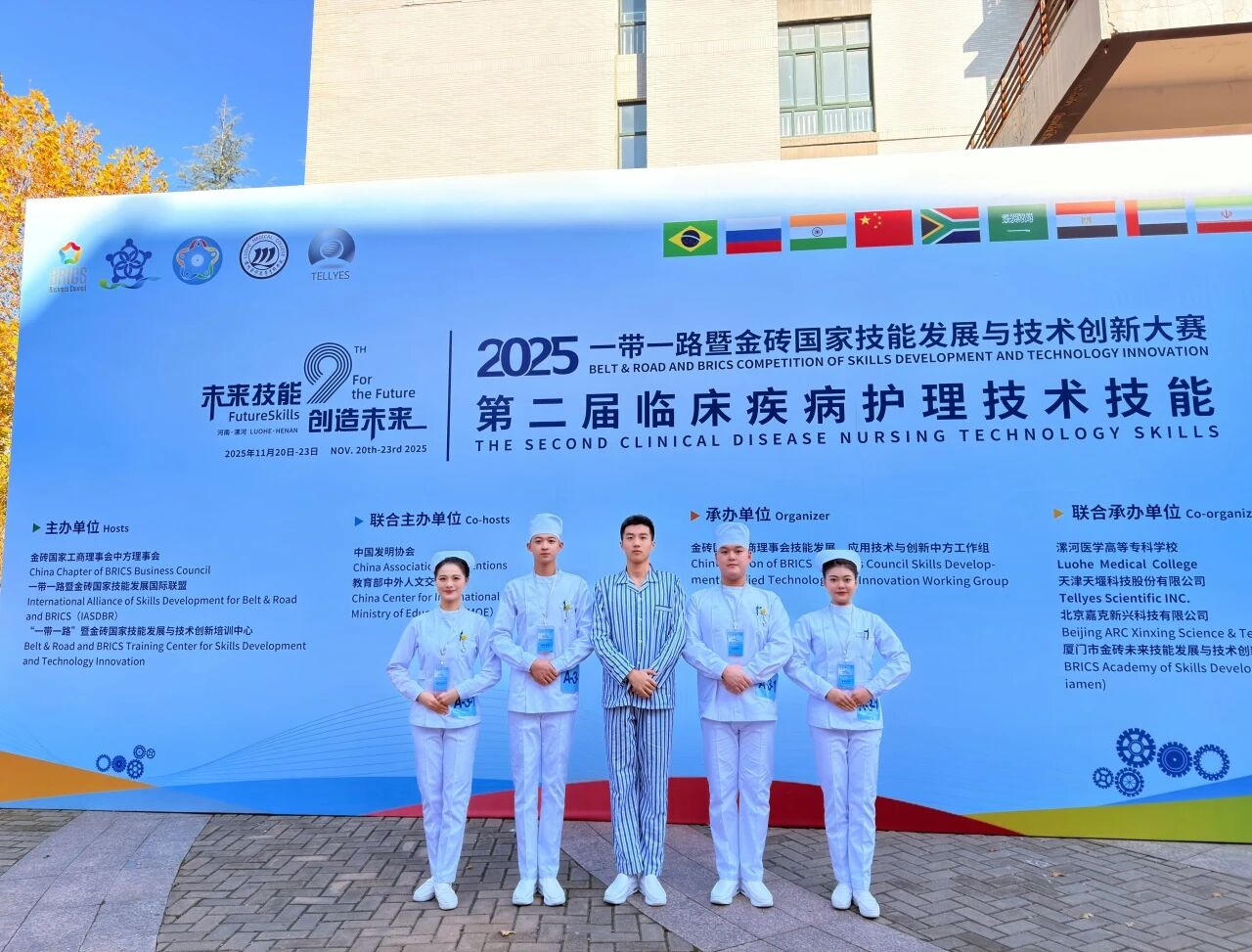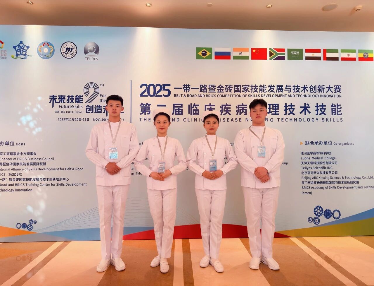 2025年11月21日,“2025一带一路暨金砖国家技能发展与技术创新大赛第二届临床疾病护理技术技能赛项全国总决赛”在全国瞩目下圆满收官。哈尔滨城市职业学院五位参赛学子顶住全场首个出场的抽签压力,凭借过硬的专业素养、沉稳的临场发挥与精湛的操作技能,在全国多支强队的激烈角逐中崭露头角,最终以第二名的优异战绩斩获银奖,为学校赢得重磅荣誉!与此同时,哈尔滨城市职业学院凭借完善的组织保障获评“优秀组织奖”,指导教师王芸妮、乔家熠因专业的指导能力荣获“优秀指导教师奖”,一举实现护理学院国家级技能赛事“从零到一”的历史性跨越。
