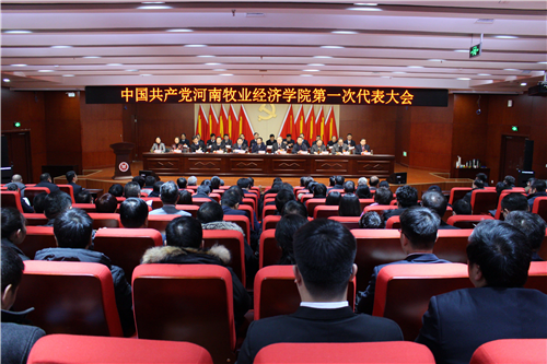 12月31日上午,中国共产党河南牧业经济学院第一次代表大会在河南牧业经济学院龙子湖校区图书馆一楼报告厅召开。中共河南省委高校工委专职委员高治军,中共河南省委高校工委组织干部处处长冯轩友,大会执行主席团成员在主席台就座。128名(正式代表129名,请假1人。)正式代表,部分离退休老领导,列席代表参加了会议。会议由校长罗士喜主持。大会回顾了学校六十多年的发展历史,总结河南牧业经济学院升本以来的主要工作,分析学校发展面临的形势,明确今后五年的目标任务,加强党对学校事业的全面领导。