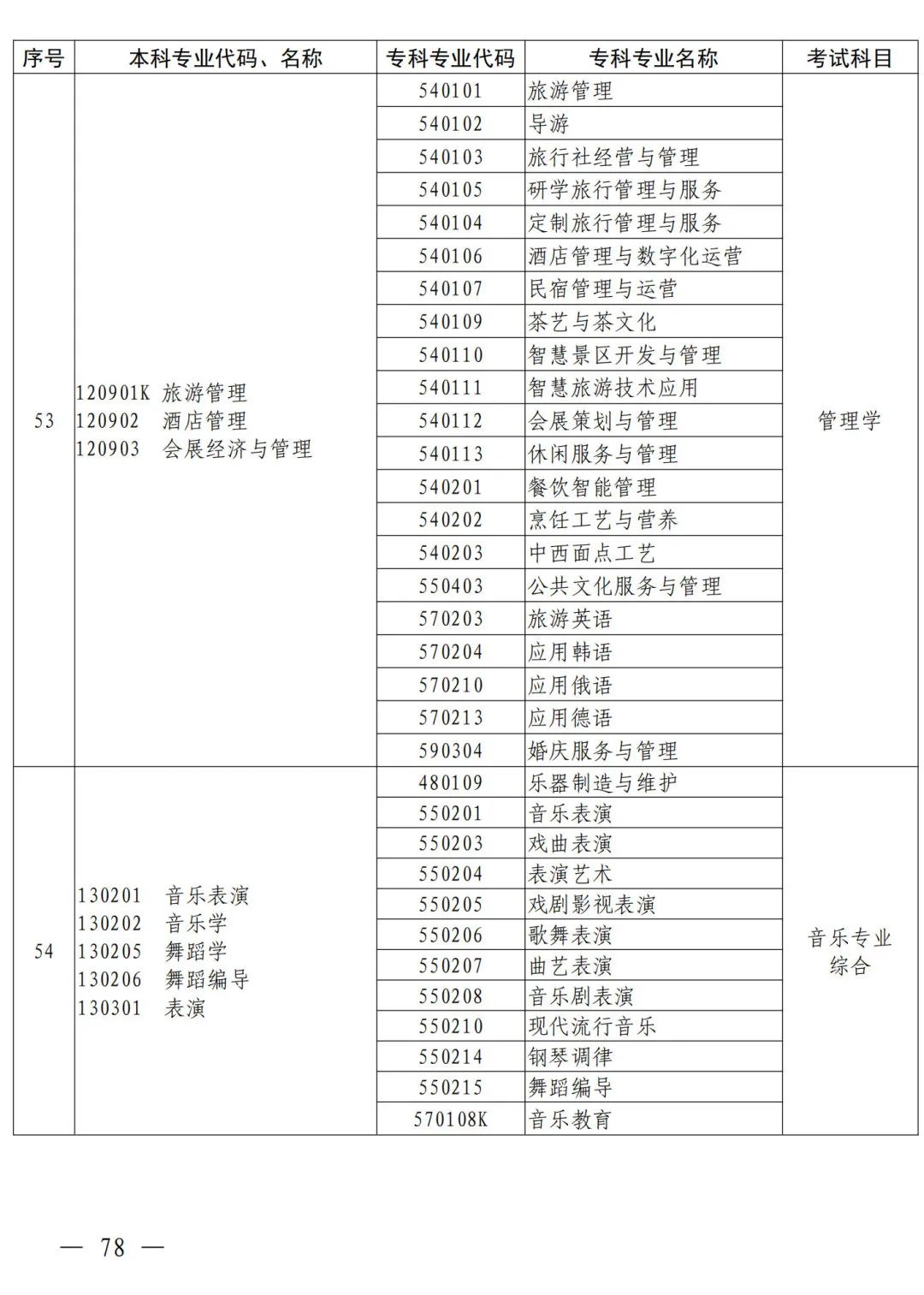 2.本、专科专业对照及考试课程一览表