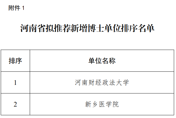 附件:1.河南省拟推荐新增博士单位排序名单
