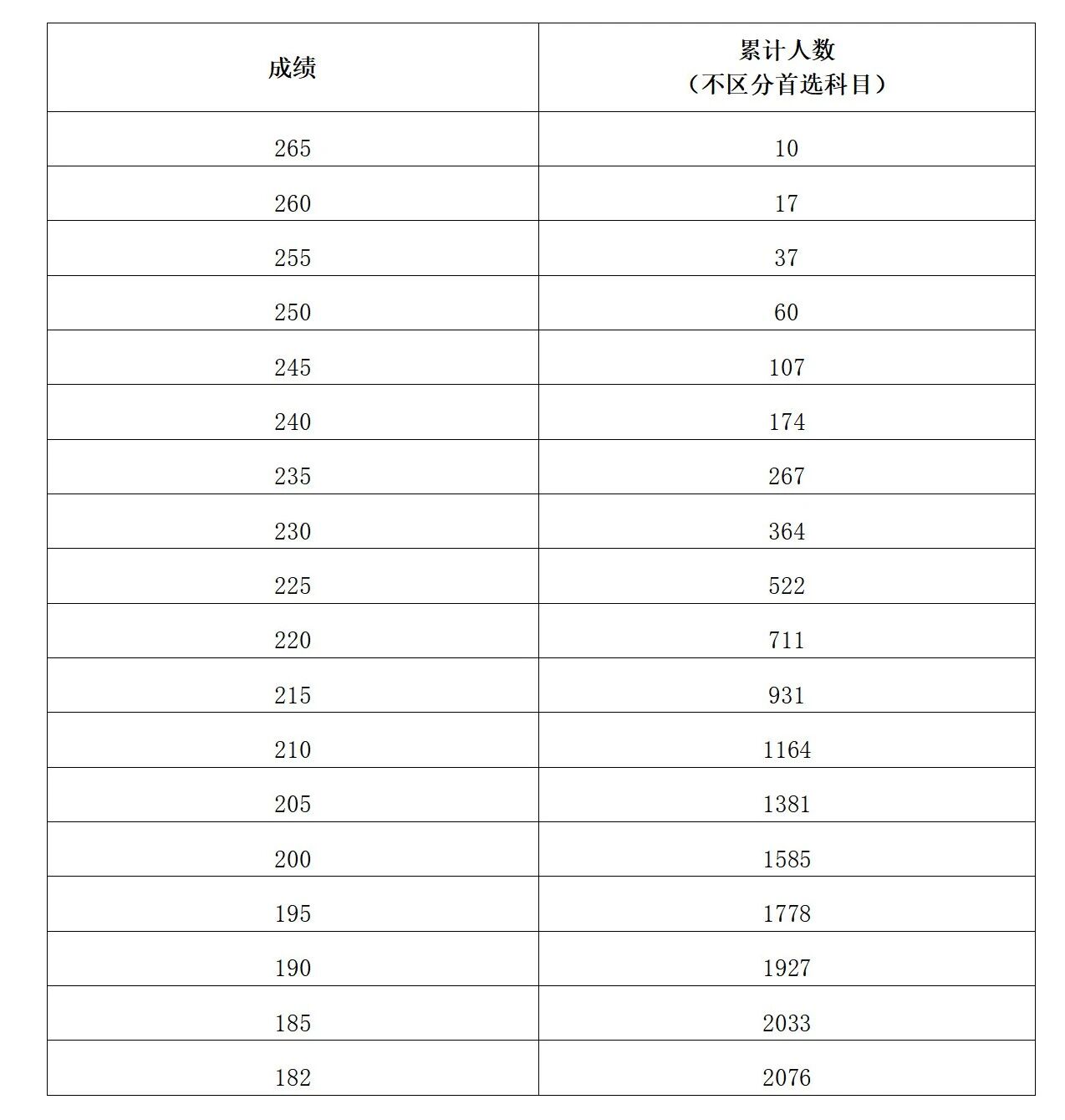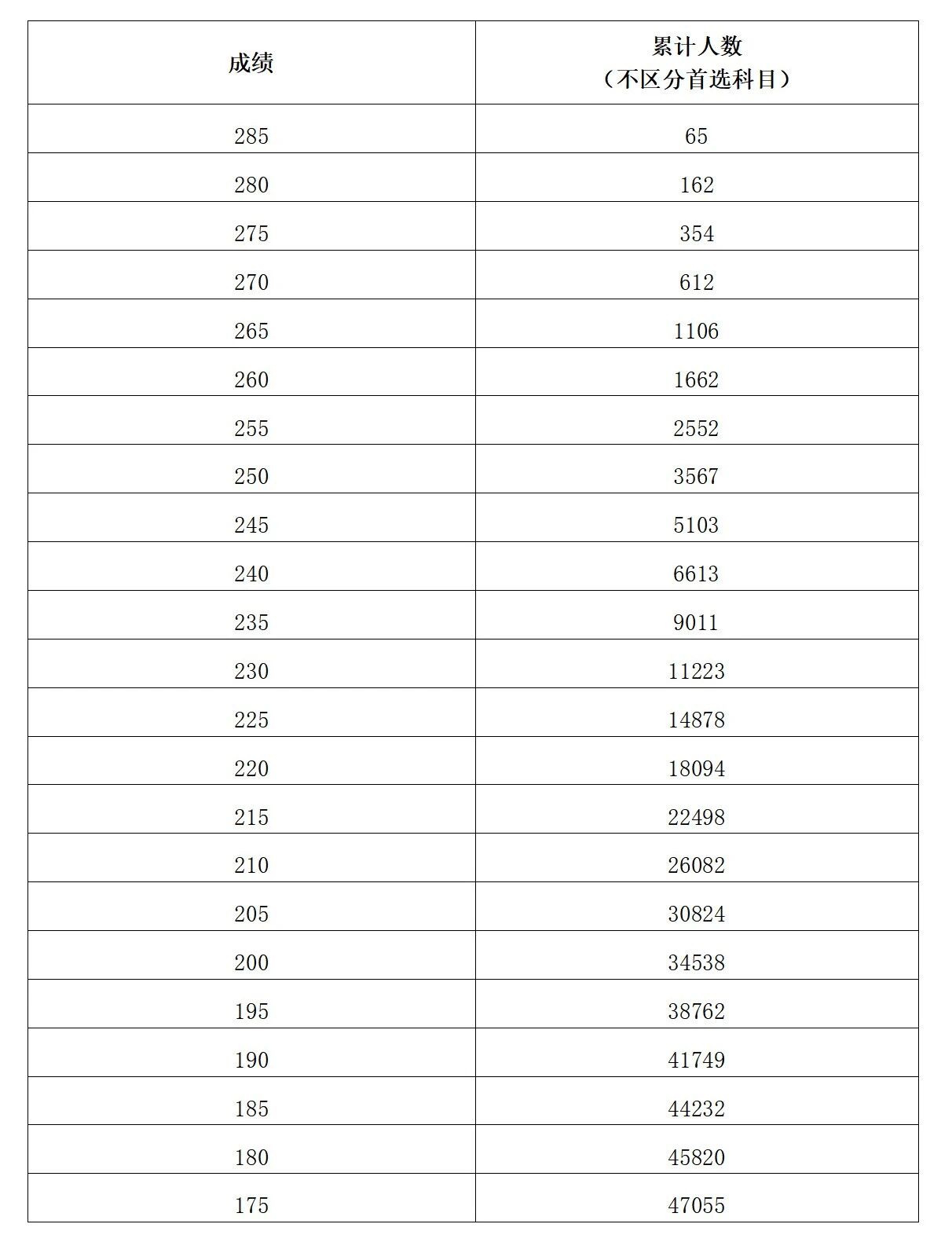 注:累计人数指该对应分数及以上考生累计人数