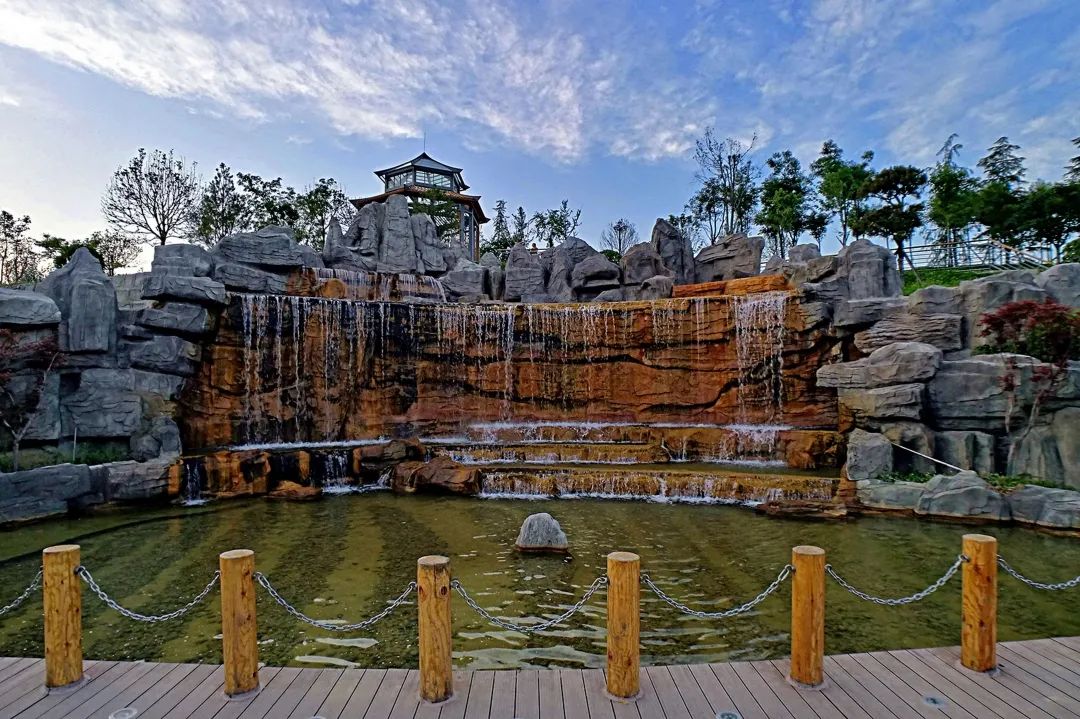 弘毅山傲然矗立,站在山上看日出,是一幕激动人心的盛景;思源瀑布飞流直下,溪水潺潺,煞是壮观。