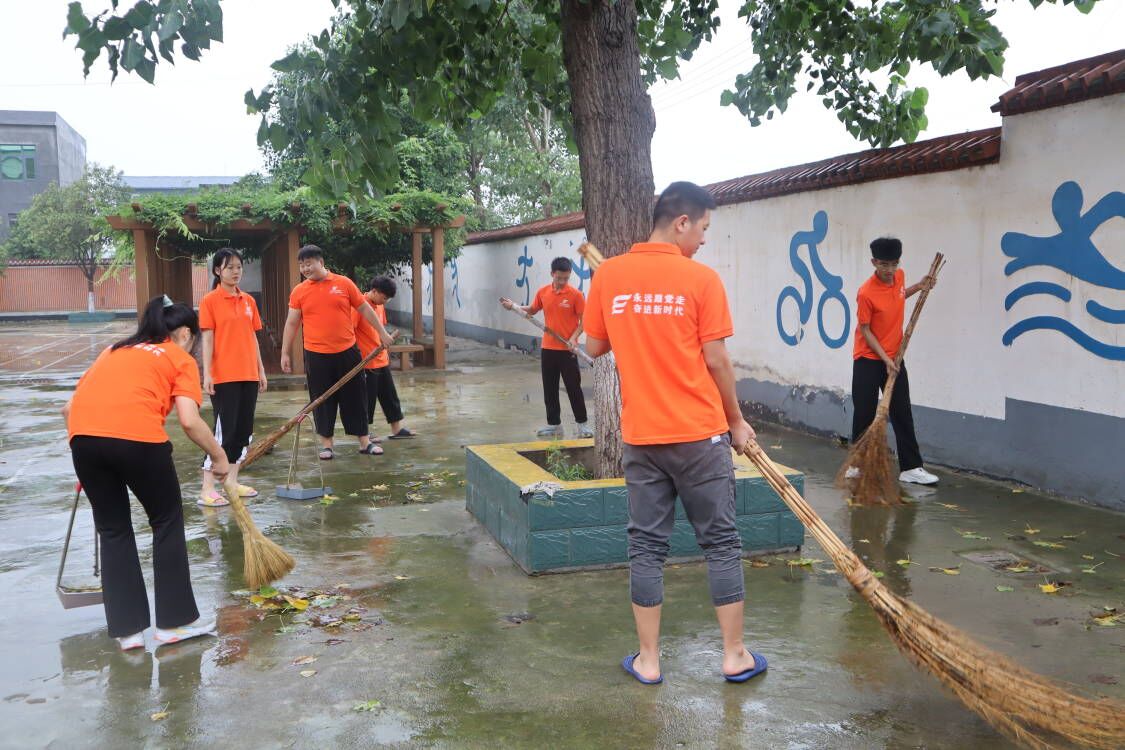 鲁山县辛集乡三西村,志愿者在清扫校园。张云帆摄
