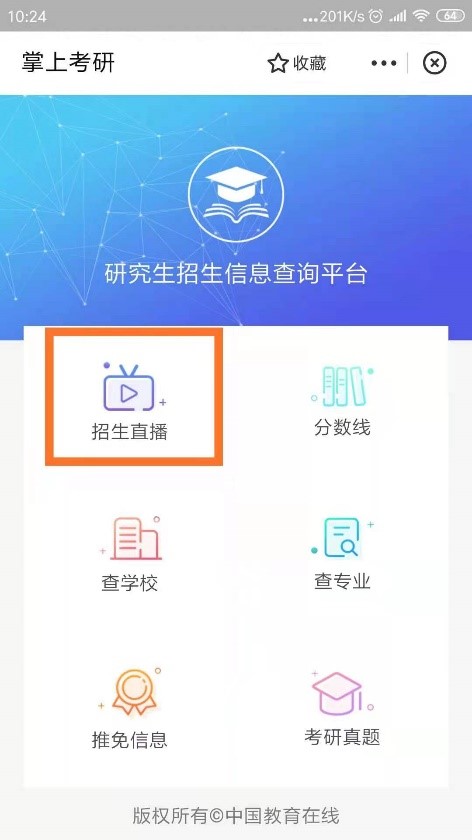 截止目前,中国教育在线·掌上考研直播场次达到2000余场,汇集了全国近400所招生单位及500万人次考生参与,为招生单位及考生搭建一个高效的交流互动平台,满足新形势下研究生招生需求。