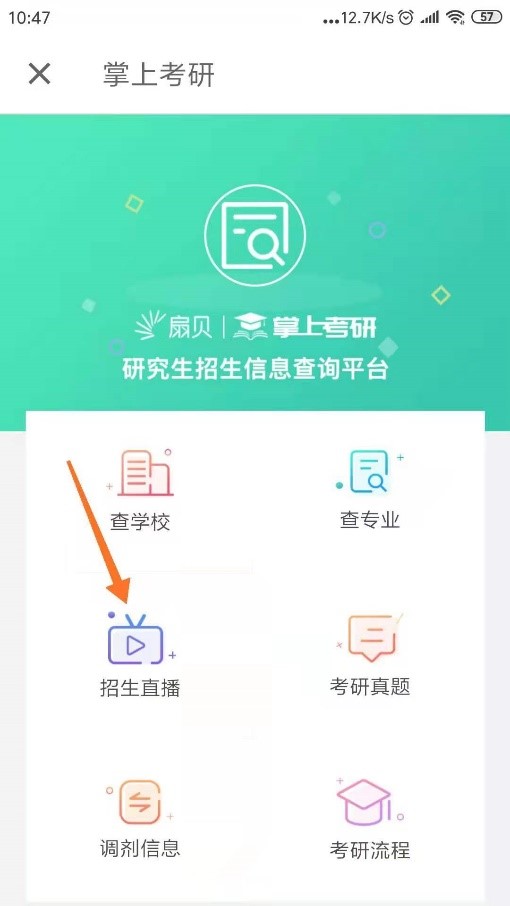 方式二:关注“掌上考研”微信公众号,点击公众号菜单中的【招生直播】-【22招生直播】,进入河南师范大学直播间。