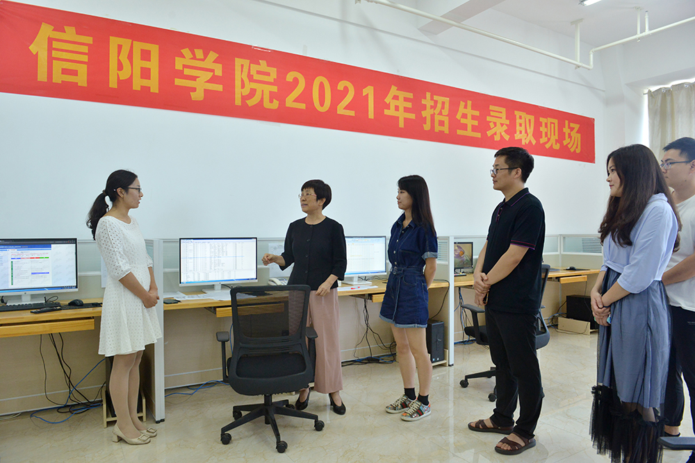 7月30日上午,河南省本科二批正式开档,理事长高云,校长助理高雅,纪委书记、校长助理杨高伟深入信阳学院2021年招生录取现场调研指导录取工作。与此同时,校党委书记褚金海、校长王北生和分管招生就业工作的党委专职副书记施昌海等各位校领导也对今年学校招生工作给予热情关心和指导。