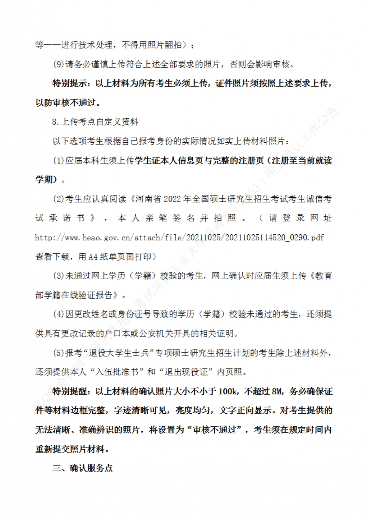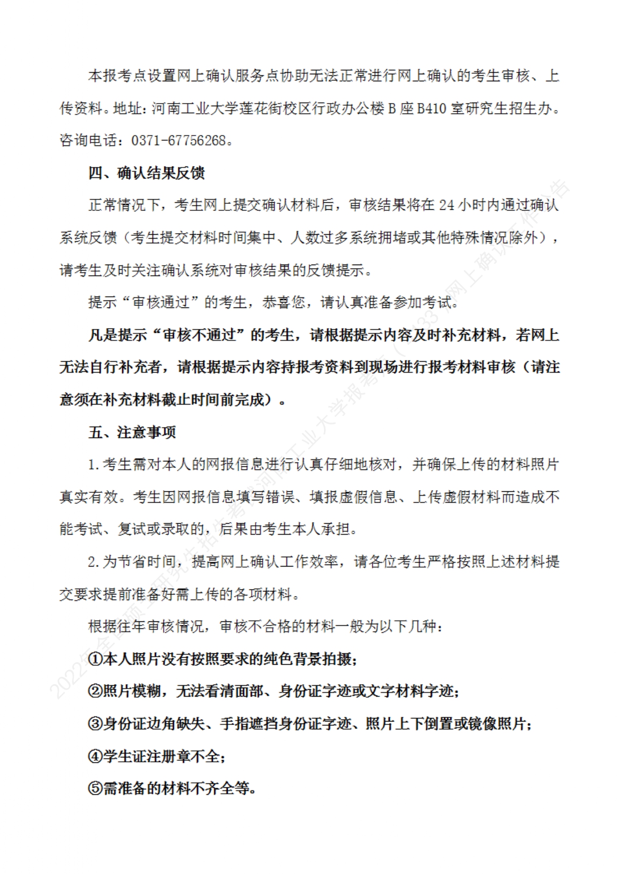 2022年全国硕士研究生招生考试河南工业大学报考点(4133)网上确认工作公告
