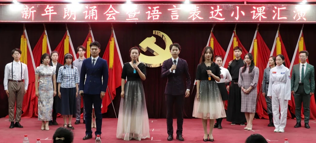 《语言表达小课》是播音与主持艺术专业的核心课程,也是一门检验教学实践效果的重要的专业基础课。把语言表达艺术与朗诵艺术、舞台表演艺术相结合,用真情感悟美,用声音传播美,让美的语言成为生活的日常,是这门课的核心教学任务。在授课中,教师要引导学生深度挖掘每一篇稿件的精神内核,把握正确的思想动机和宣传导向,完成有声语言的二度创作。《语言表达小课》的结课之时,恰逢每年的岁末年初,于是以“新年朗诵会”的形式进行本课程的结课汇报演出,成为了中原工学院播音与主持艺术专业坚持了13年的传统。聆听播音之声,感受诗歌之美,每逢新年到来之际,播音学子都会以这样的方式辞旧迎新,检验过去一学期的学习成果,放飞对新学年的梦想与期待。本次演出,是播音20级全体师生历经三周精心准备后的精彩呈现。