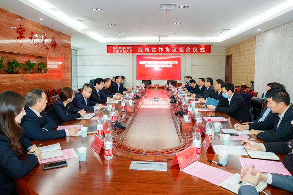 校长孔留安代表学校致辞,从历史沿革、办学特色、学科建设、重大成果、社会声誉等方面介绍了学校的基本情况。他指出,河南科技大学致力于紧密结合洛阳产业发展实际,强化产学研特色优势,突出轴承、金属材料、自动化、装备制造等领域的科技优势,落实省委省政府支持“双一流”的决策部署,扎实推进学校“双一流”创建。通过合作,河南科技大学将发挥在基础理论技术研究、人才培养、新技术研发、试验技术、成果产业化等方面的优势,洛单集团发挥在技术产业化应用、装备制造、新材料研发等领域优势,通过人才的优势互通,课题研发的深度参与,建立长期、紧密的合作关系。