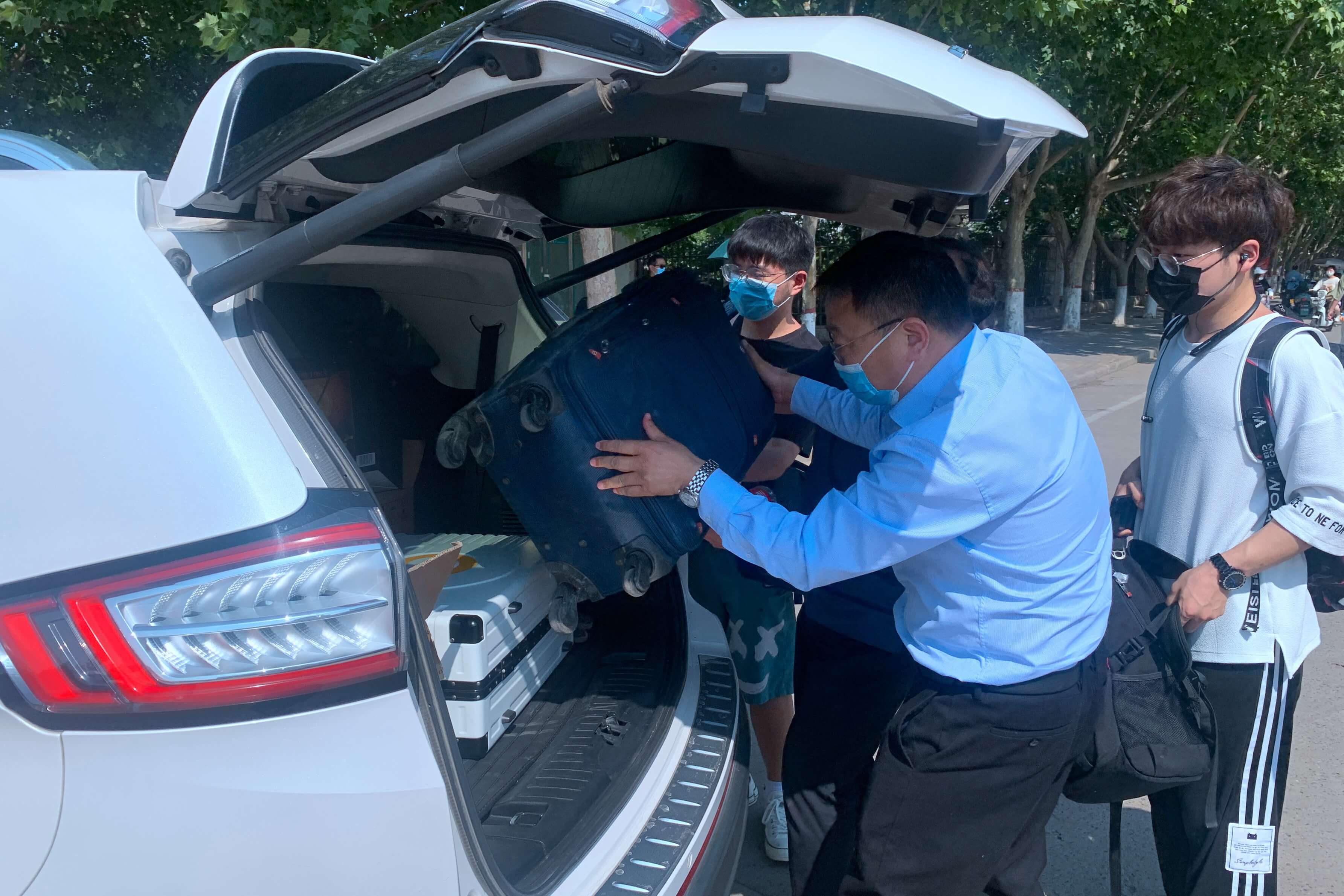 “同学你好,大家不用着急,我来帮忙放行李!”“同学你好,坐我的车,送你去车站。”……志愿服务活动中,党员志愿者们个个热情洋溢、干劲十足。有的志愿者帮助同学们搬运行李,有的志愿者负责身兼司机和装卸工,一辆辆爱心送站服务的车辆,无数次往返于学校和车站之间。
