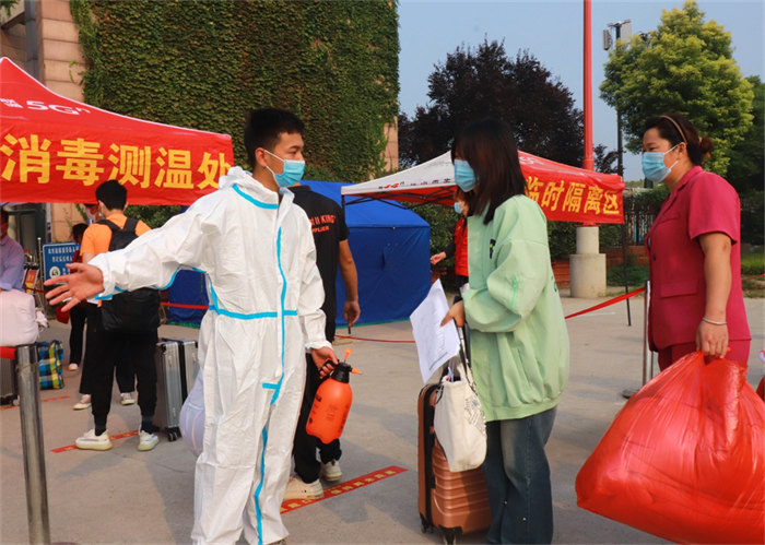 车站慰问,真诚暖心。迎新期间校领导辗转校外,前往商丘站,商丘火车南站等迎新地点,慰问一线工作人员。校领导对现场迎新工作人员尽职尽责的辛苦付出表示感谢与赞扬,对秩序井然、有条不紊的现场给予了充分的肯定,同时叮嘱大家热心细致、快速有序地做好各项迎新工作的同时,也要注意好自身防护。