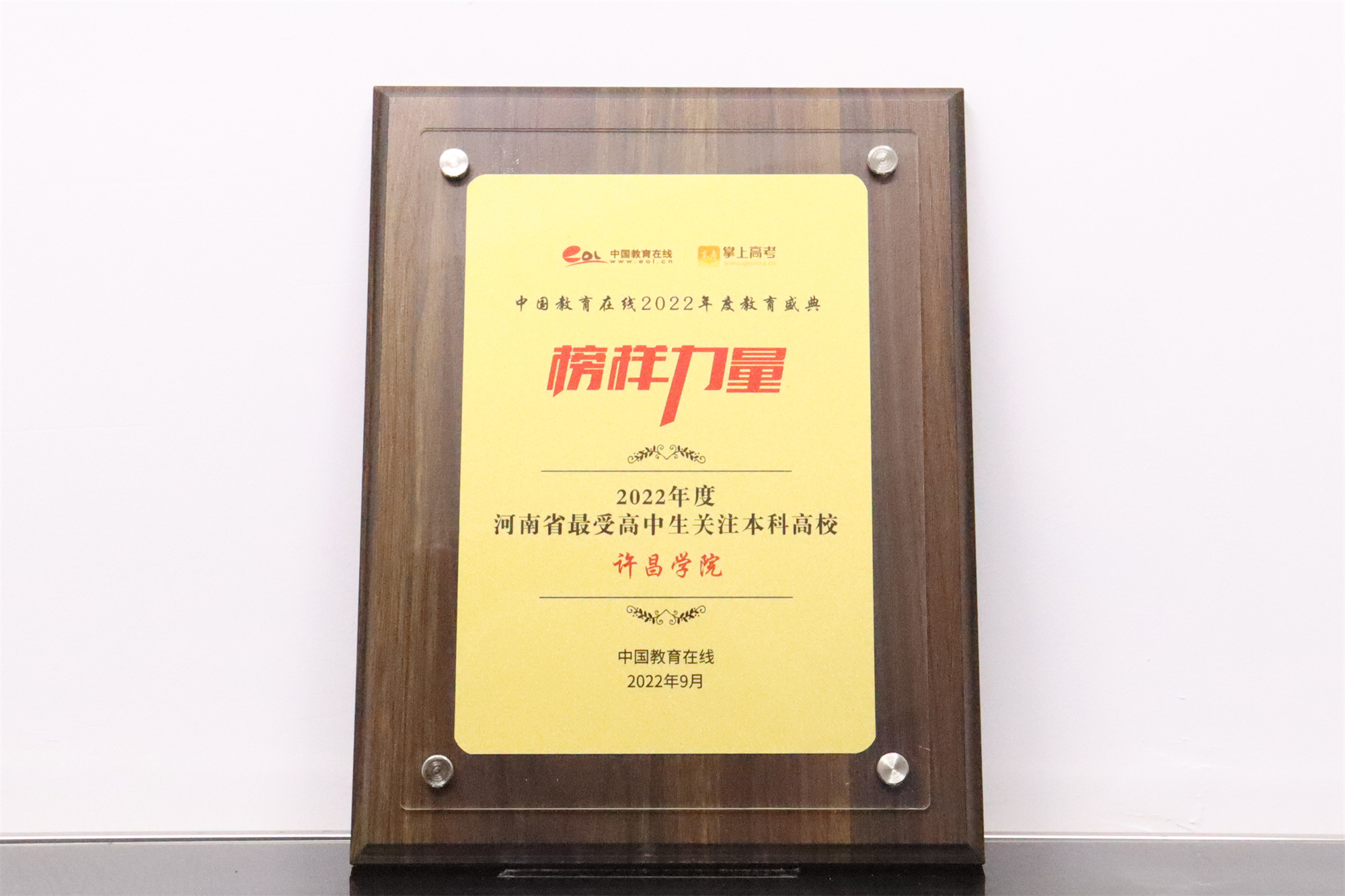 近日,中国教育在线“榜样力量·2022年度教育盛典”评选获奖名单揭晓,许昌学院荣获“2022年度河南省最受高中生关注本科高校”荣誉称号。