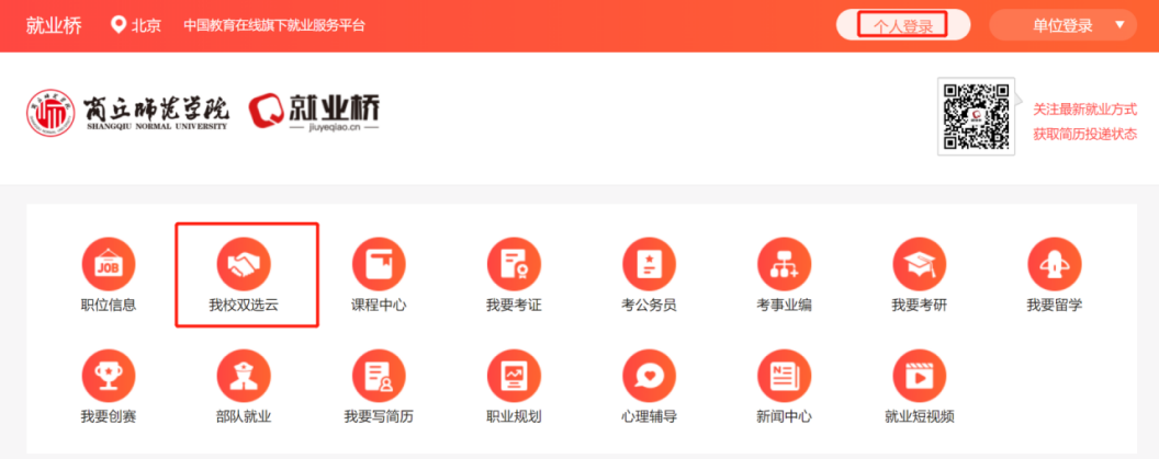 电脑端登录网址:商丘师范学院专属就业桥——https://sqnu.jiuyeqiao.cn/